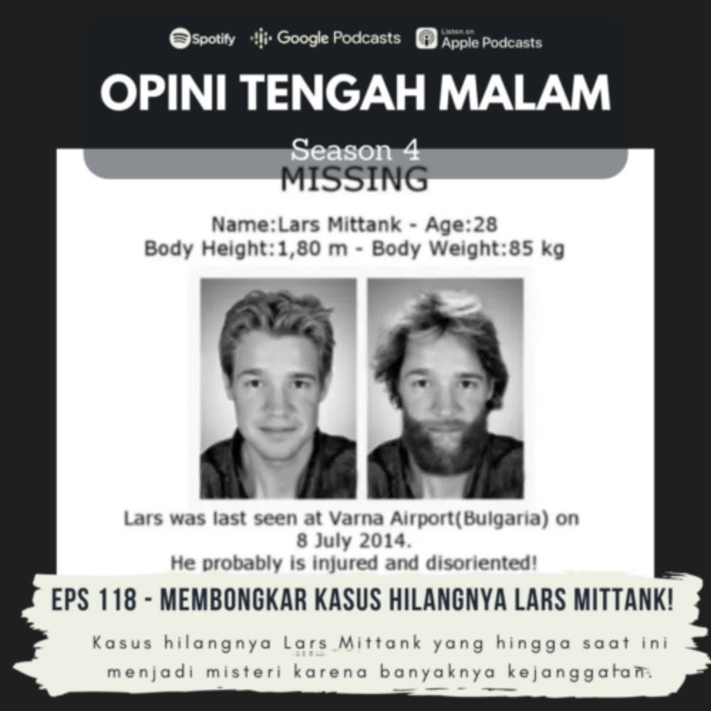 Kasus hilangnya Lars Mittank yang hingga saat ini menjadi misteri karena banyaknya kejanggalan. Lars lari meninggalkan bandara dan meninggalkan semua barang bawaannya tanpa alasan. Kejadian ini tertangkap CCTV dan masih jadi misteri apa tujuan dan kemana Lars hingga saat ini?