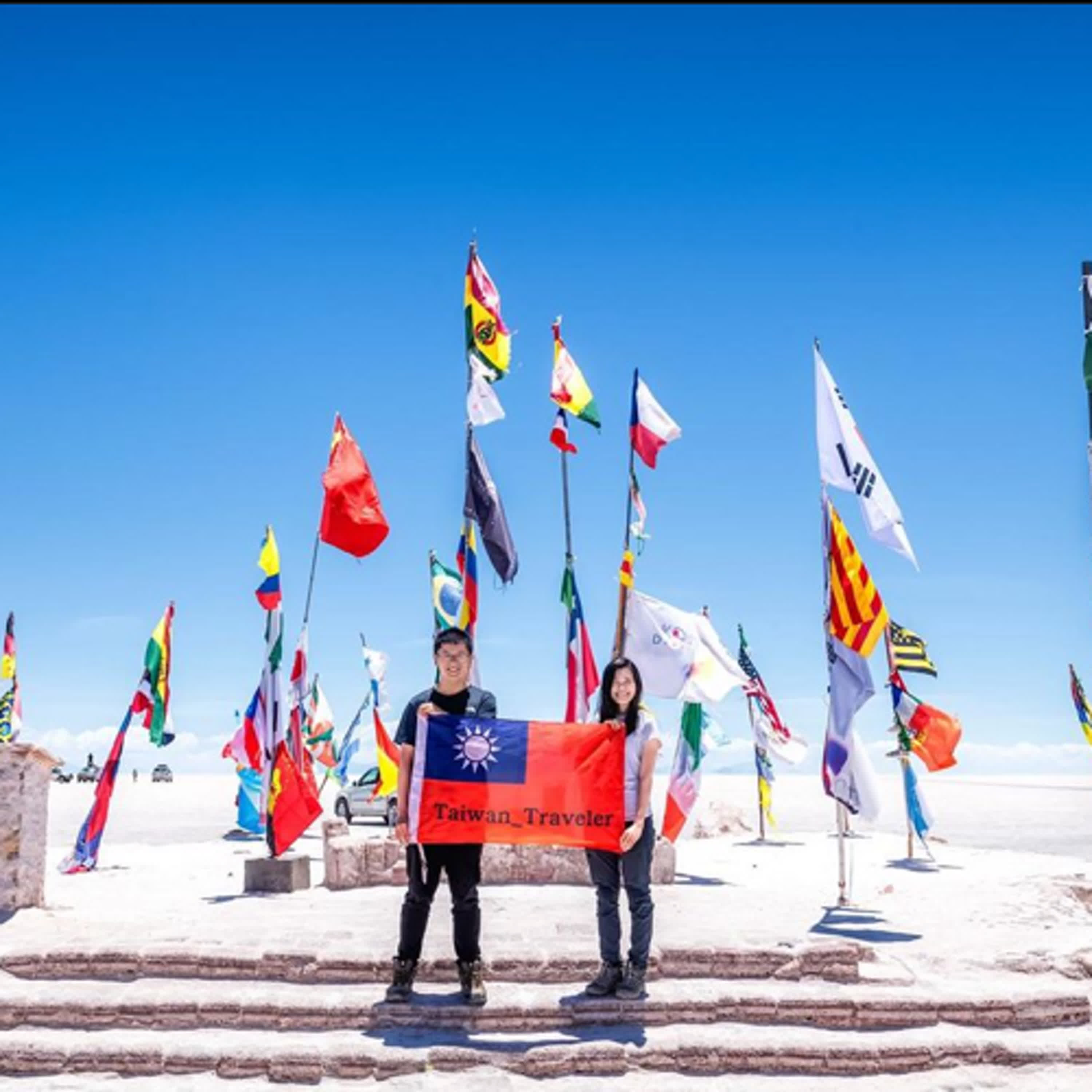 率真的攝影師帶著另一半和國旗