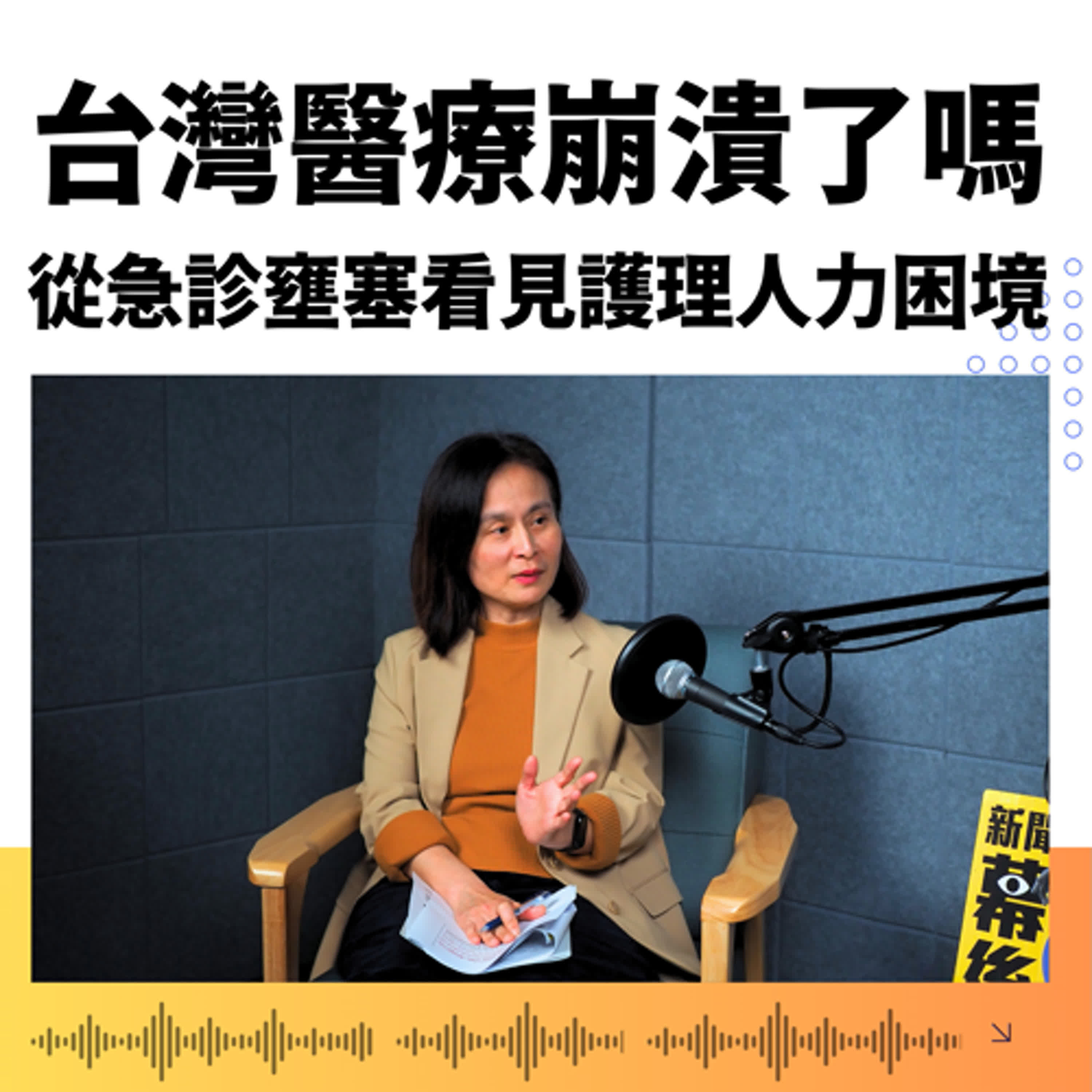 本集Podcast特別邀請到在台大醫院急診室服務長達30年的護理部副主任詹靜媛,以第一線的視角,深入剖析台灣醫療體系長期存在的急診壅塞與護理人力短缺問題。
