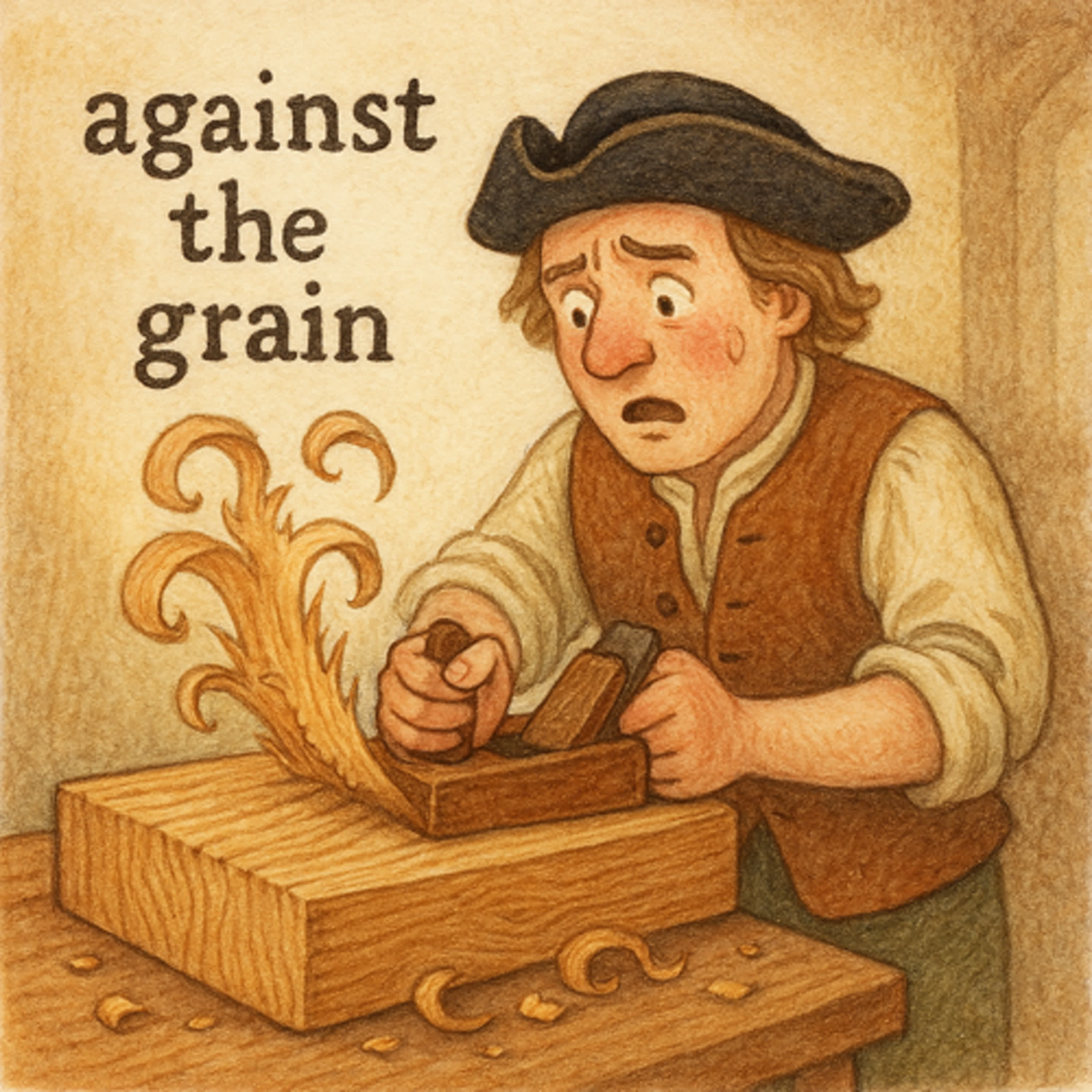 🤔 等等,Grain 不是穀物嗎?義無反顧為什麼跟穀物有關係? 不是啦! “Against the grain” 這句話原本是木匠的噩夢——逆著紋理刨木頭,刀會卡、木頭還會起毛邊。
