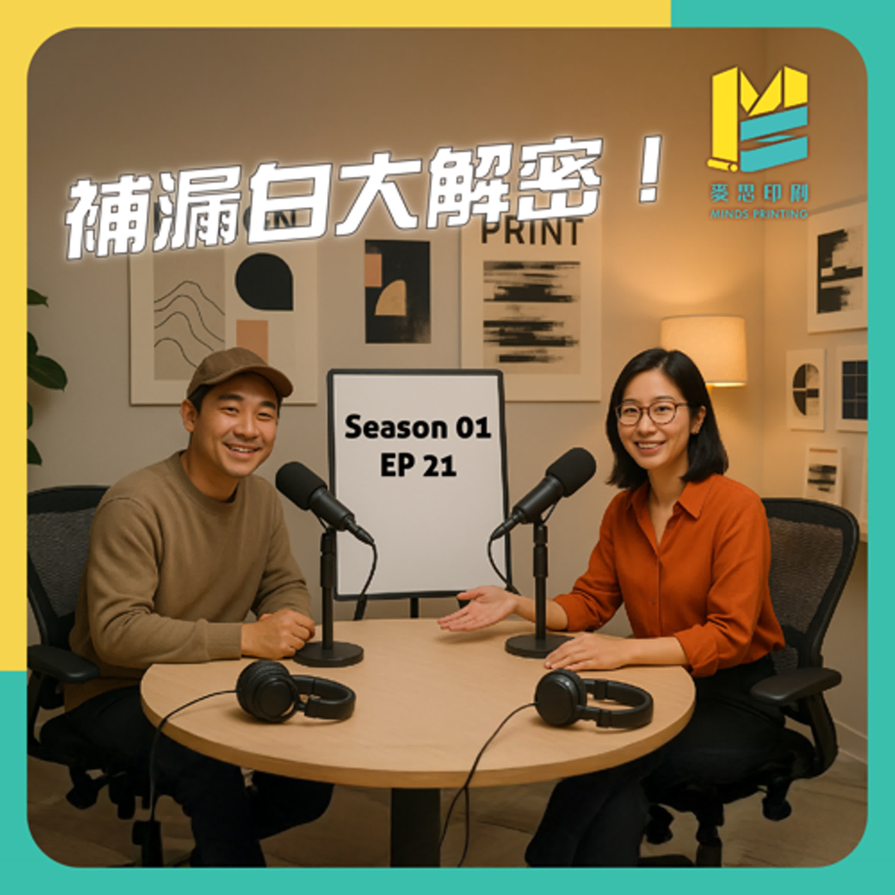 本集聚焦在印刷設計常見的「套印不準」與「補漏白」技術。主持人麥麥與思思用生活化比喻,說明 knockout (去底色)為何容易留下刺眼白邊,並拆解補漏白三招──漲邊、縮邊與疊印,幫助設計在實際印刷中完美對位。