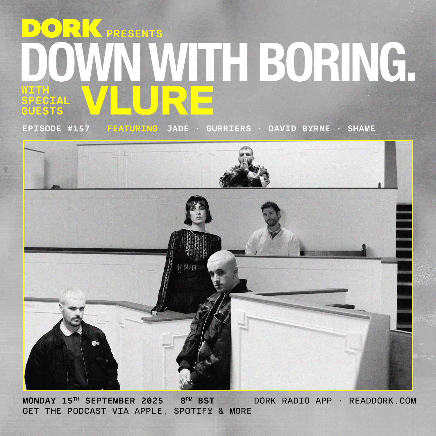 Down With Boring is back on home turf tonight, returning to full-fat chaos after a summer of irregular specials and festival shenanigans. Joining us in the ‘studio’ (well, Zoom call – Ed) are Friends of the Magazine VLURE, who are about to drop their much-anticipated and Really Very Good debut album ‘Escalate’; we will, once again, attempt to make pill-punk happen.