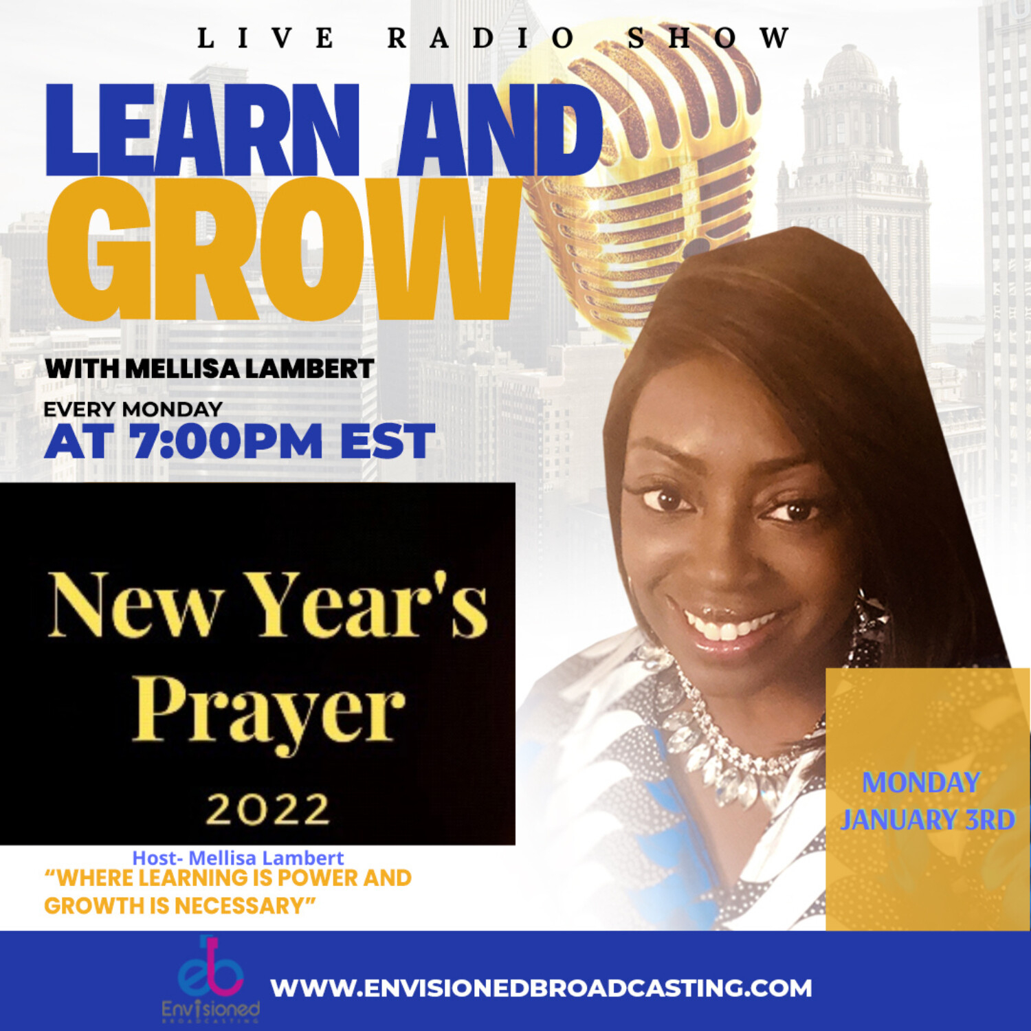 This show will bring you into 2022 with prayers and words of encouragement. We have 4 powerful ladies who will pray over you and release a blessing for this new year. Make it a blessed 2022. Follow our speakers: Khadija Romney Thrive@kromney.com IG: k_romney_