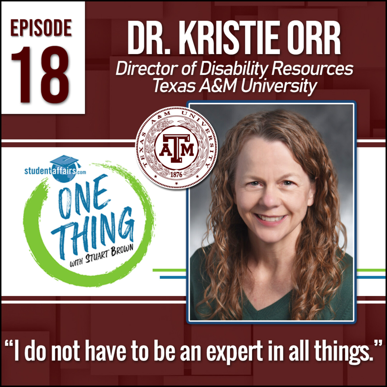 Full transcript available at https://www.studentaffairs.com/podcast/onething/s1/18-dr-kristie-orr.