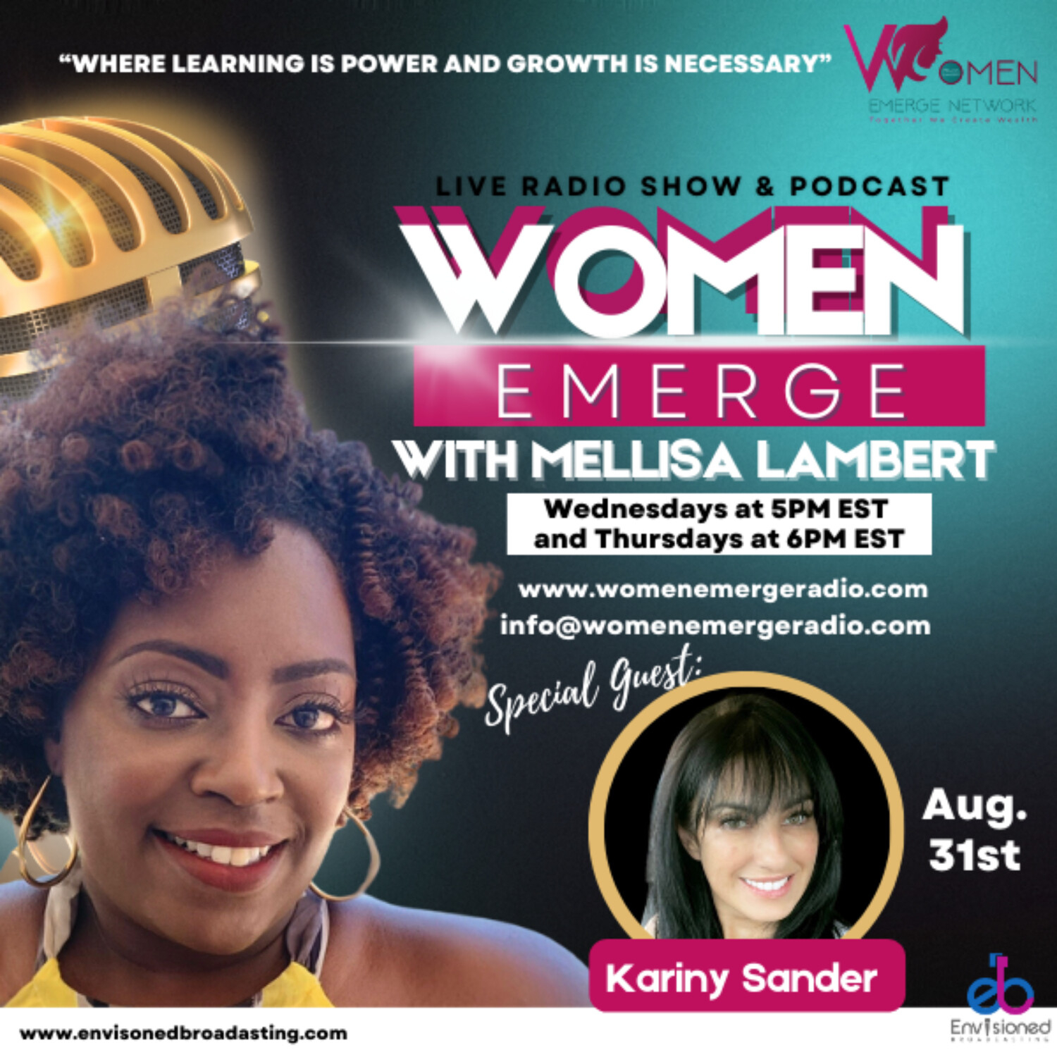 This show is sponsored by Women Emerge Network a Network created for Women, Men and Children to help bring families Dreams, Destiny, and Businesses Together. This show will introduce you to leaders, experts and motivators who share their journeys and their stories through: Personal and Professional Growth, Knowledgeable Tips, and Lessons learnt that will Empower you to Grow! It’s time to grow your: Mind, Spirit, Body, Your Brand, Business and Finance! Today we will be discussing with our guest Kariny Sander how to stay Organized! She is a Fitness Instructor,Professional Organizer, she is in the over 40 club, and a proud mom of three beautiful children. Let’s learn and grow with Kariny today!