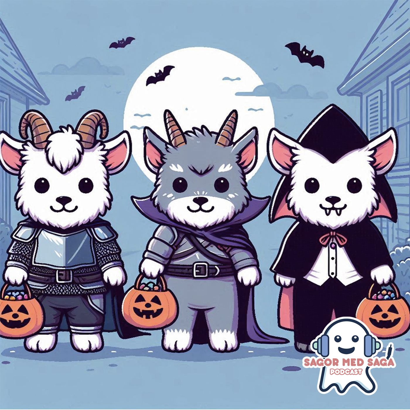 I detta spännande Halloween-avsnitt av "Bockarna Bruse" följer vi med Lilla Bocken Bruse, Mellanbocken Bruse och Stora Bocken Bruse på deras allra första "bus eller godis"-äventyr. Med skrämmande kostymer ger de sig ut för att samla godis från byns snälla invånare. Men deras kväll tar en oväntad vändning när de når trollets hus, och istället för godis blir dom tvugna att använda bus! Hur ska bockarna Bruse överlista trollet? Lyssna på hur de tre bockarna klurar ut en genial plan för att lura trollet och avsluta Halloween med fulla godispåsar och ett gott skratt. En saga för barn i alla åldrar!