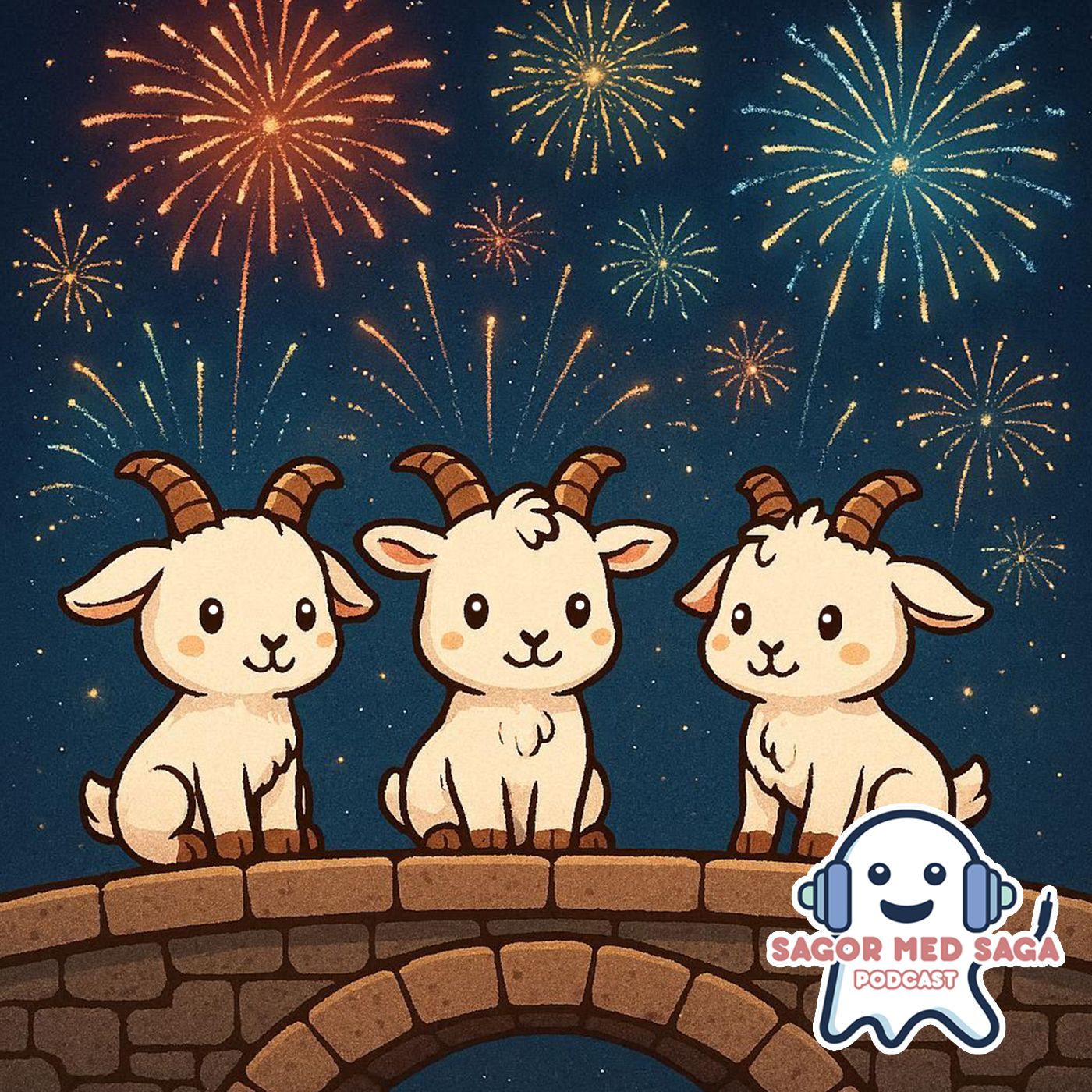 Bockarna Bruse och den stora nyårsfesten är en varm och spännande nyårssaga för barn. Följ Lilla, Mellan och Stora Bocken Bruse när de ordnar årets största fest vid bron tillsammans med alla djuren i byn. Men när oväntade smällar skrämmer gästerna hotas firandet – kan vänskap och mod rädda nyåret? En snäll och trygg saga om gemenskap, perfekt för barn i alla åldrar och som godnattsaga eller nyårsmys med hela familjen. Tack för det här året och alla som lyssnar – det kommer fler avsnitt nästa år. Hjälp oss växa genom att betygsätta podden och följ oss på Instagram @sagormedsaga.