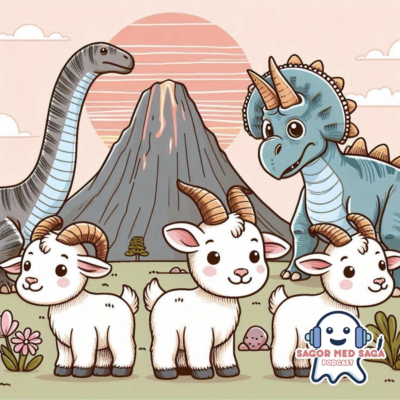 I detta avsnitt får vi följa Bockarna Bruse när de ger sig ut på ett magiskt äventyr! När gräset tar slut på deras äng hittar de en magisk bro som leder till en helt ny värld – dinosaurievärlden! Här möter Bockarna de vänliga dinosaurierna Långis och Trixie.