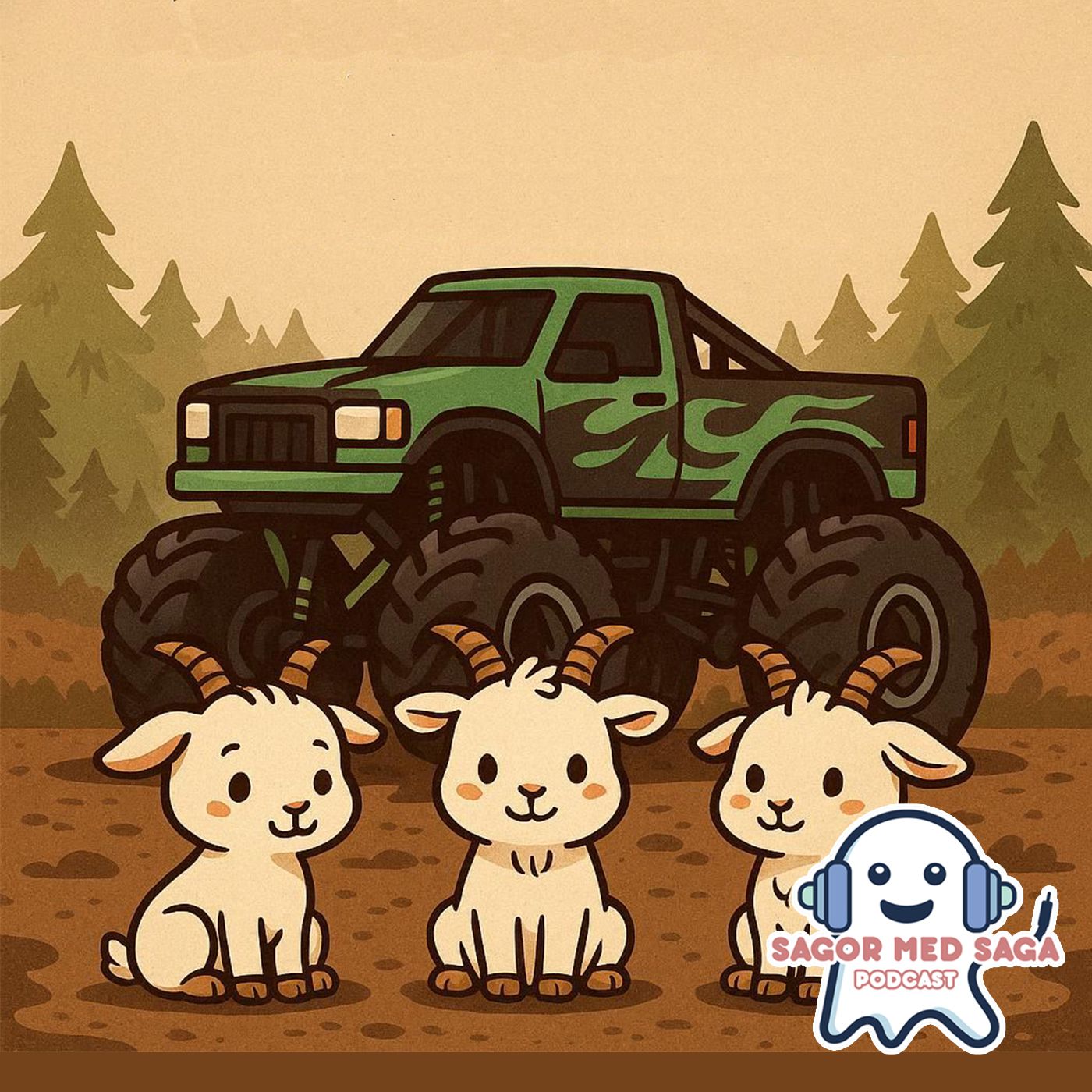 Bockarna Bruse och Monster Trucken är ett spännande och lekfullt avsnitt av Sagor med Saga – en modern godnattsaga för barn. Här möter vi de tre Bockarna Bruse i en ny version av den klassiska sagan, där kreativitet, samarbete och en fartfylld monster truck står i centrum. Tillsammans bygger de en riktig monster truck med stora traktordäck och när de möter trollet vid bron tar äventyret en oväntad och rolig vändning. En trygg, fantasifull och lärorik barnberättelse som passar perfekt vid läggdags eller sagostund.