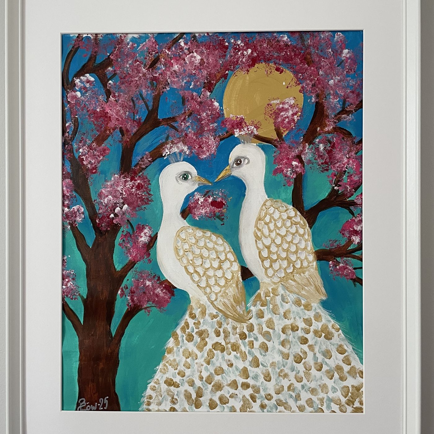 Omslagsbilden till det här avsnittet är en tavla från min kärlekshörna – med två påfåglar som påminner mig om en relations skönhet, styrka och spegling. Tavlan är målad av Britt-Marie Löw.