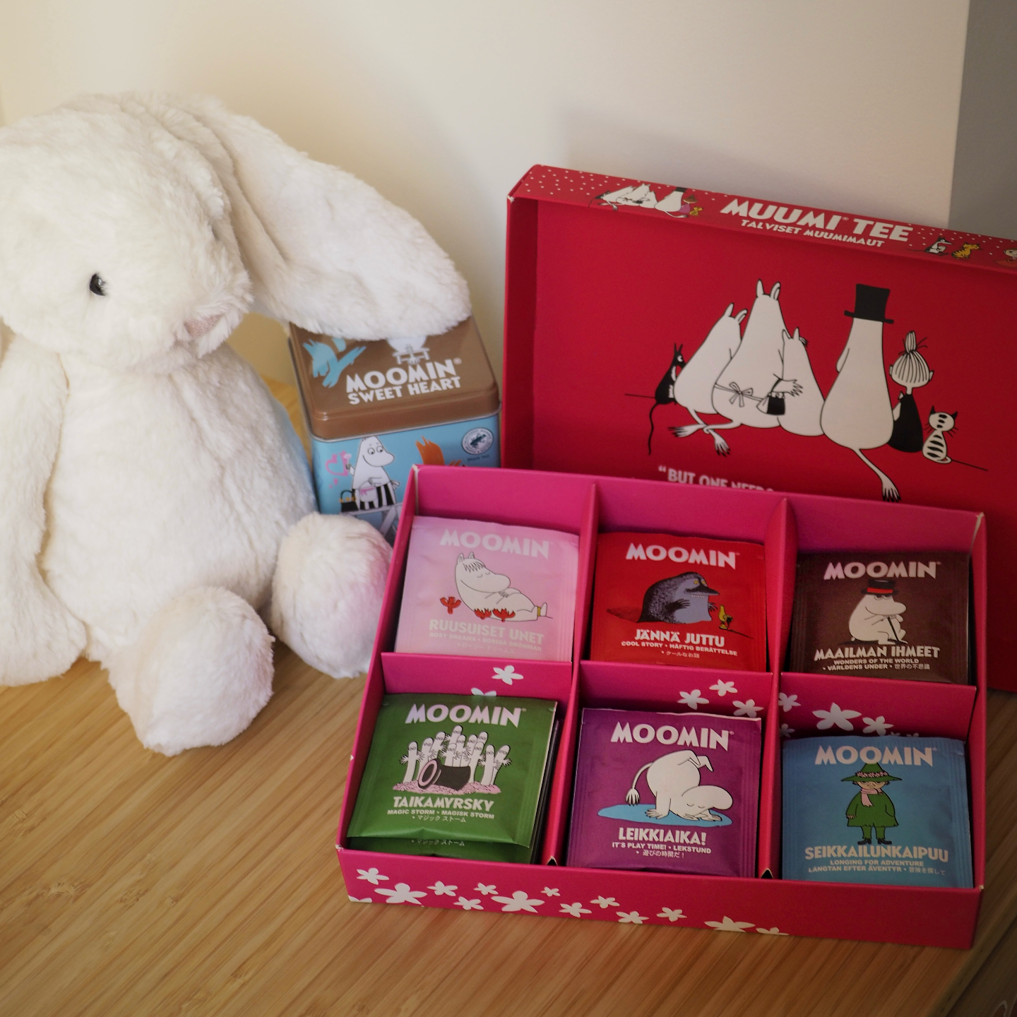 【暖达芬姆明系列红茶】,主播最近的心头好。粉红盒子一打开就是六种小小的幸福,我最爱的烤苹果派风味,佛手柑与橙子风味,香草和梨子风味,甚至还有松露巧克力风味。