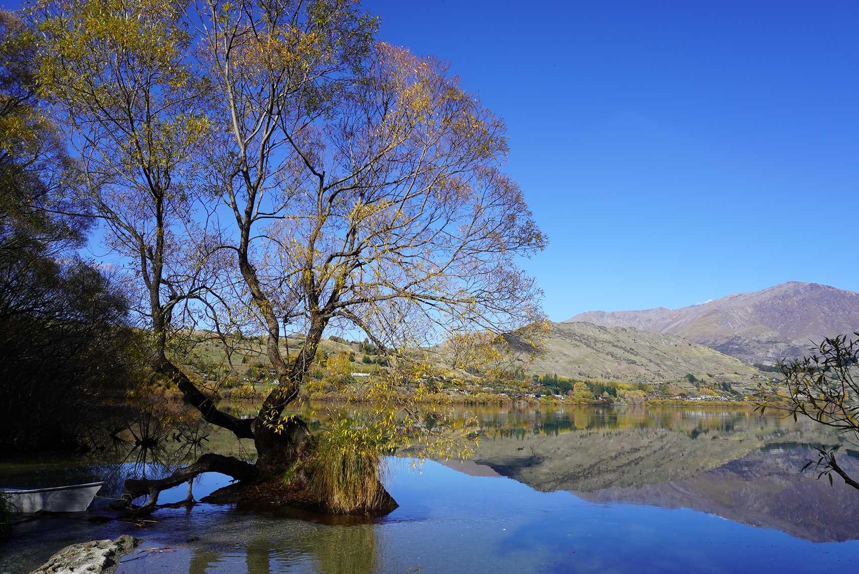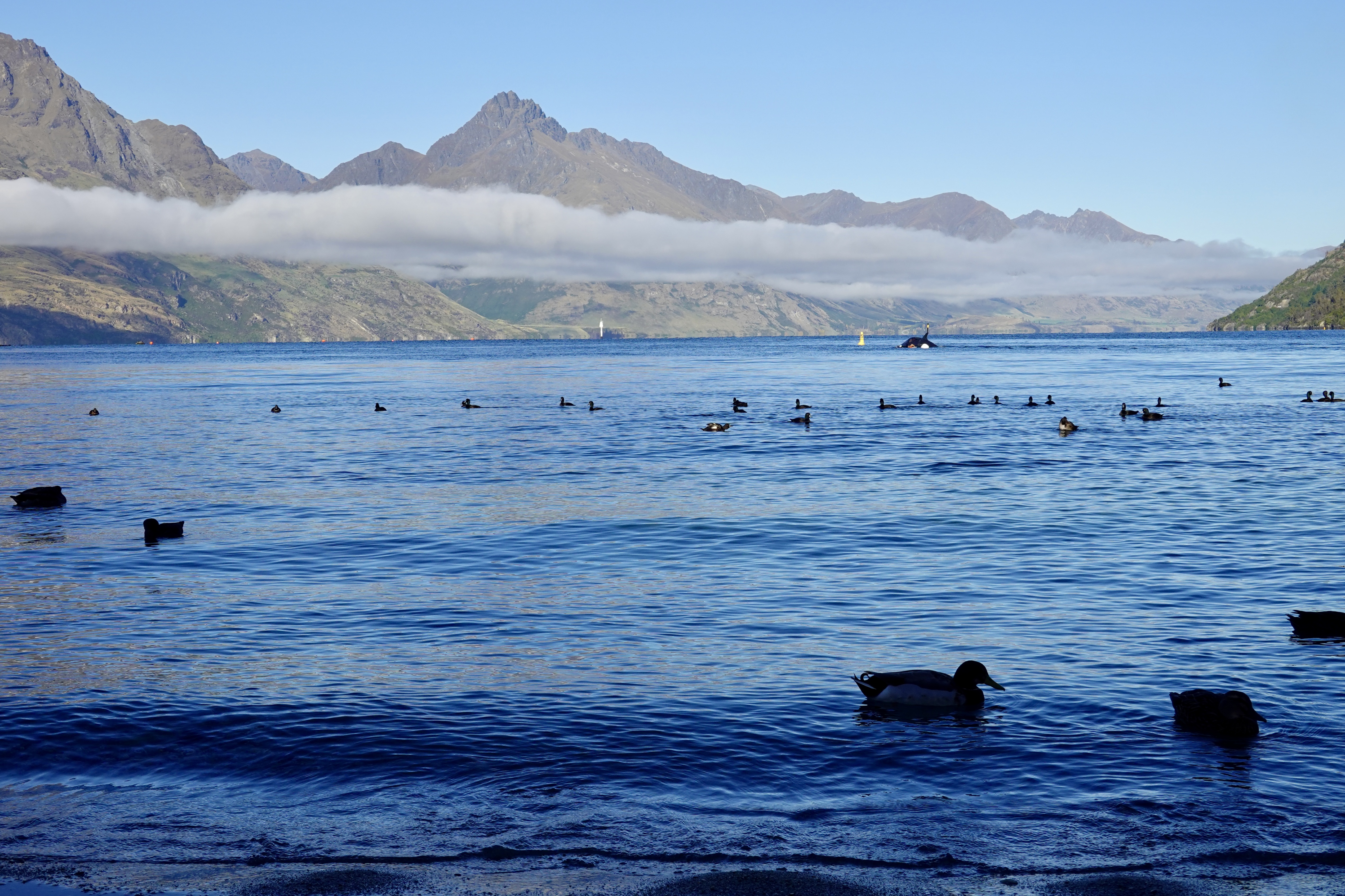 皇后镇,湖边白云横山腰