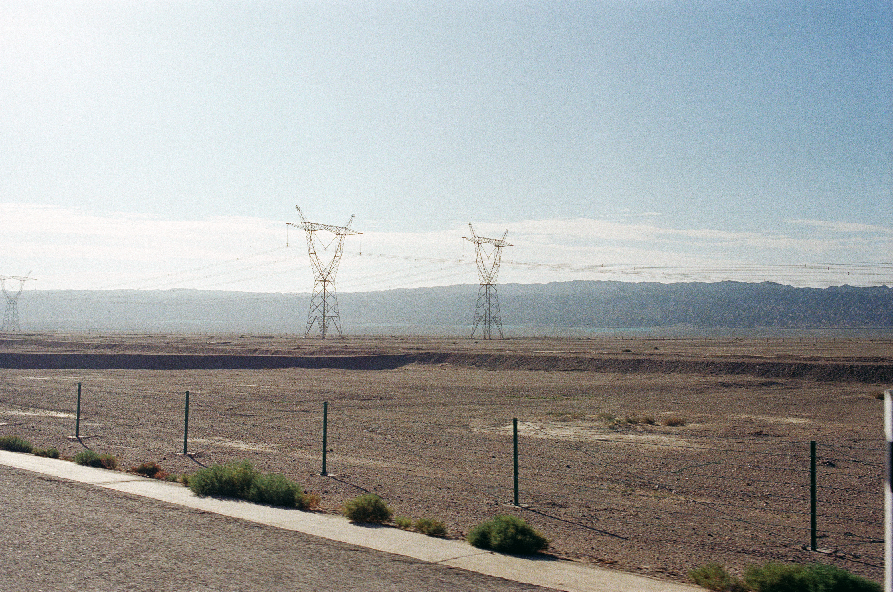 敦煌东西线常见的风景 戈壁滩 远处的山脉和高压电线杆⬆️