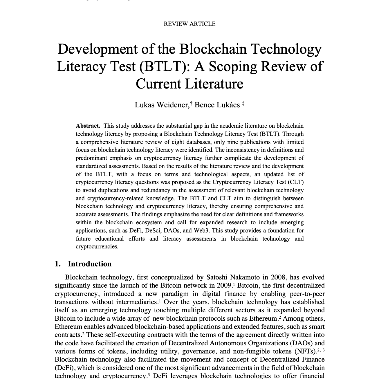 Development of the Blockchain Technology Literacy Test (BTLT): A Scoping Review of Current Literature