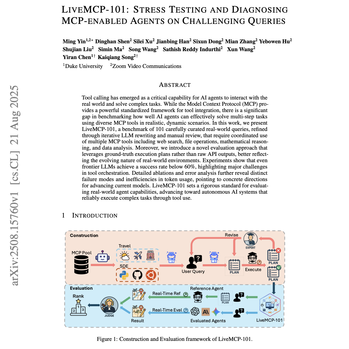 实验表明,即使是最前沿的 LLM,其成功率也不足 60%,凸显了工具编排方面的重大挑战。详尽的消融实验与错误分析进一步揭示了不同的失败模式和 token 使用低效等问题,为提升现有模型的能力提供了具体方向。LiveMCP-101 为评估真实世界代理能力设定了严格标准,推动了朝向能够通过工具使用可靠执行复杂任务的自主 AI 系统的发展。