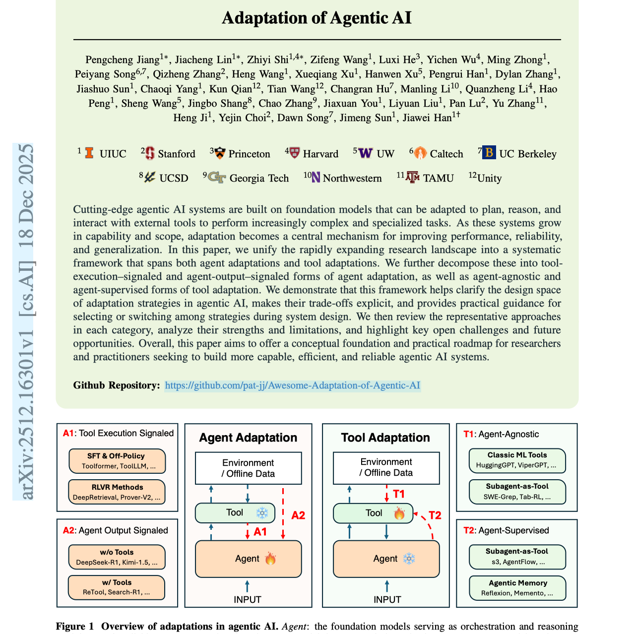 我们展示了该框架如何帮助澄清智能体 AI 中适配策略的设计空间,使其权衡关系更加明确,并为系统设计过程中策略的选择或切换提供实用指导。随后,我们回顾了各类别的代表性方法,分析其优势与局限,并指出关键的未解决挑战及未来研究机会。
