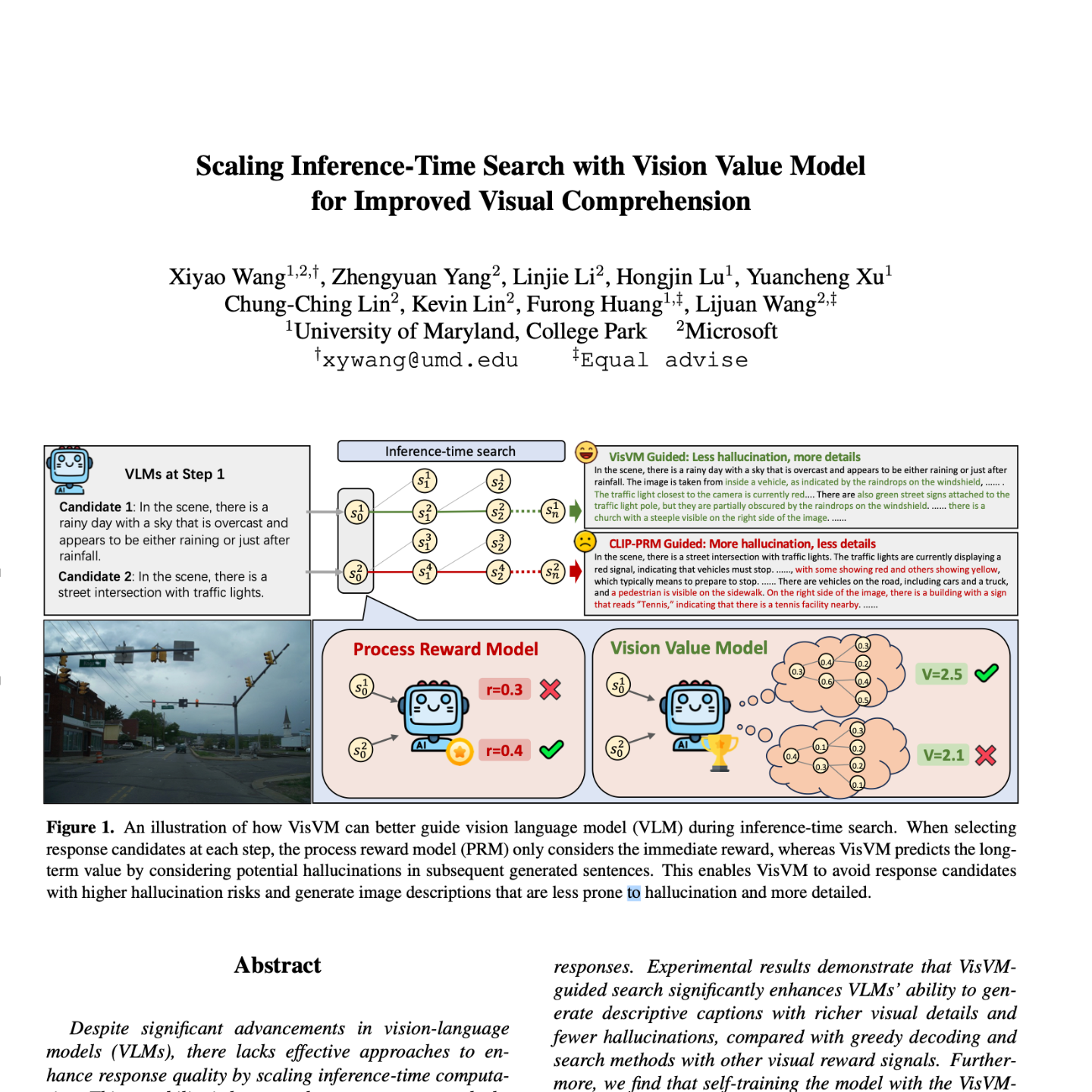 This research paper introduces the Vision Value Model (VisVM), a novel approach to improve the visual comprehension of vision-language models (VLMs). VisVM guides inference-time search in VLMs by predicting the long-term value of generated sentences, reducing hallucinations and increasing detail in image descriptions. Experiments demonstrate that VisVM-guided search outperforms other methods, and that using VisVM-generated captions for self-training further enhances VLM performance across multiple benchmarks. The researchers conclude that VisVM offers a promising path toward creating self-improving VLMs. The model and code are publicly available.