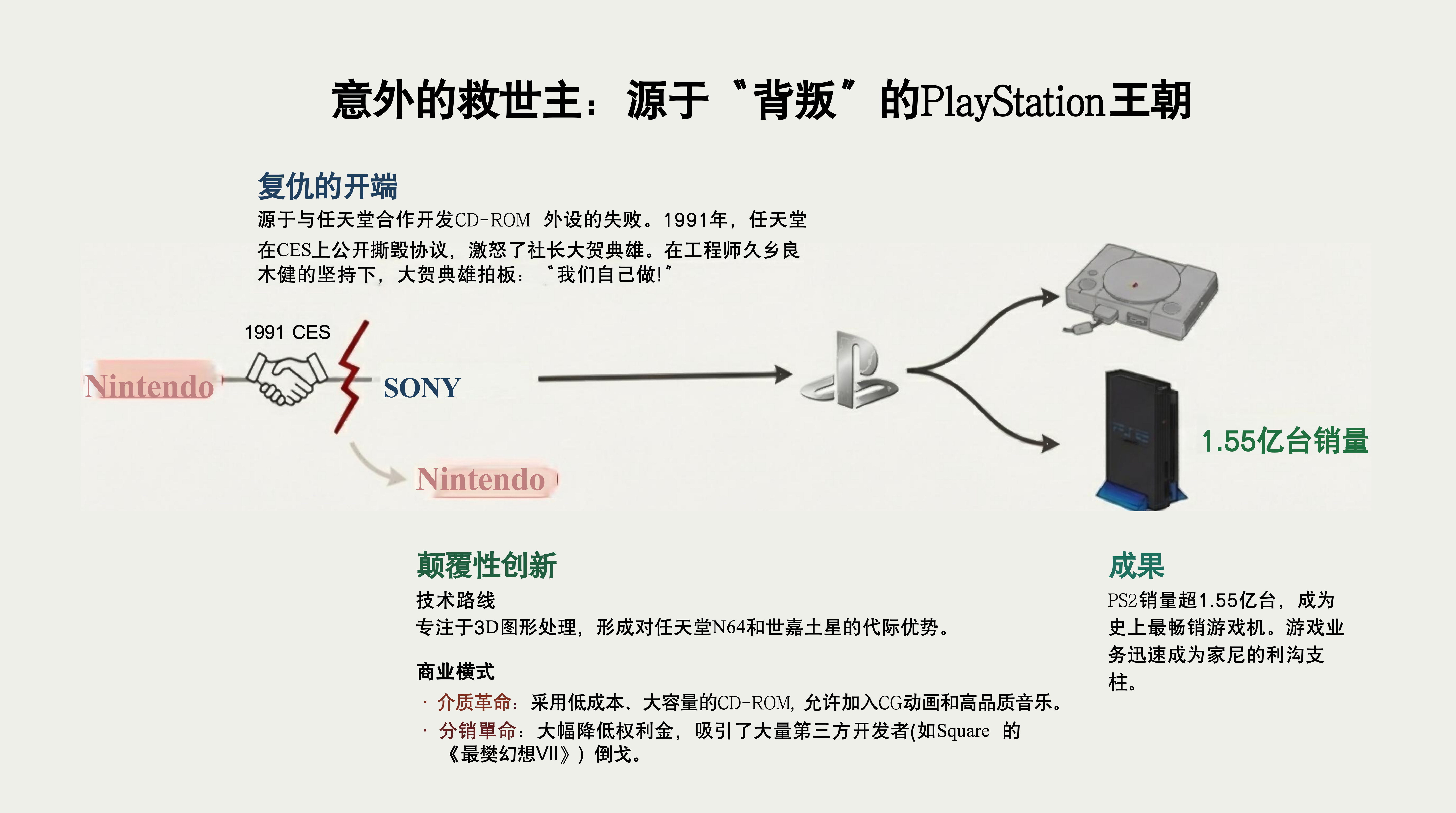 - 核心议题:PlayStation的诞生及其对索尼的拯救,以及其商业模式的创新。