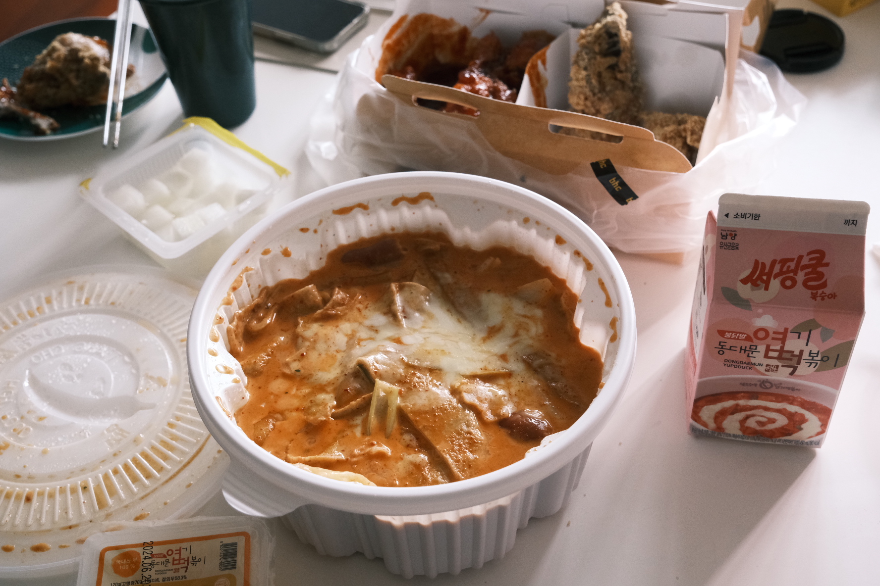 (2)罗杰炒年糕(东大门猎奇炒年糕店里有,图片是主播在民宿随便点的一家外卖,配着bhc的炸鸡一起吃很满足)