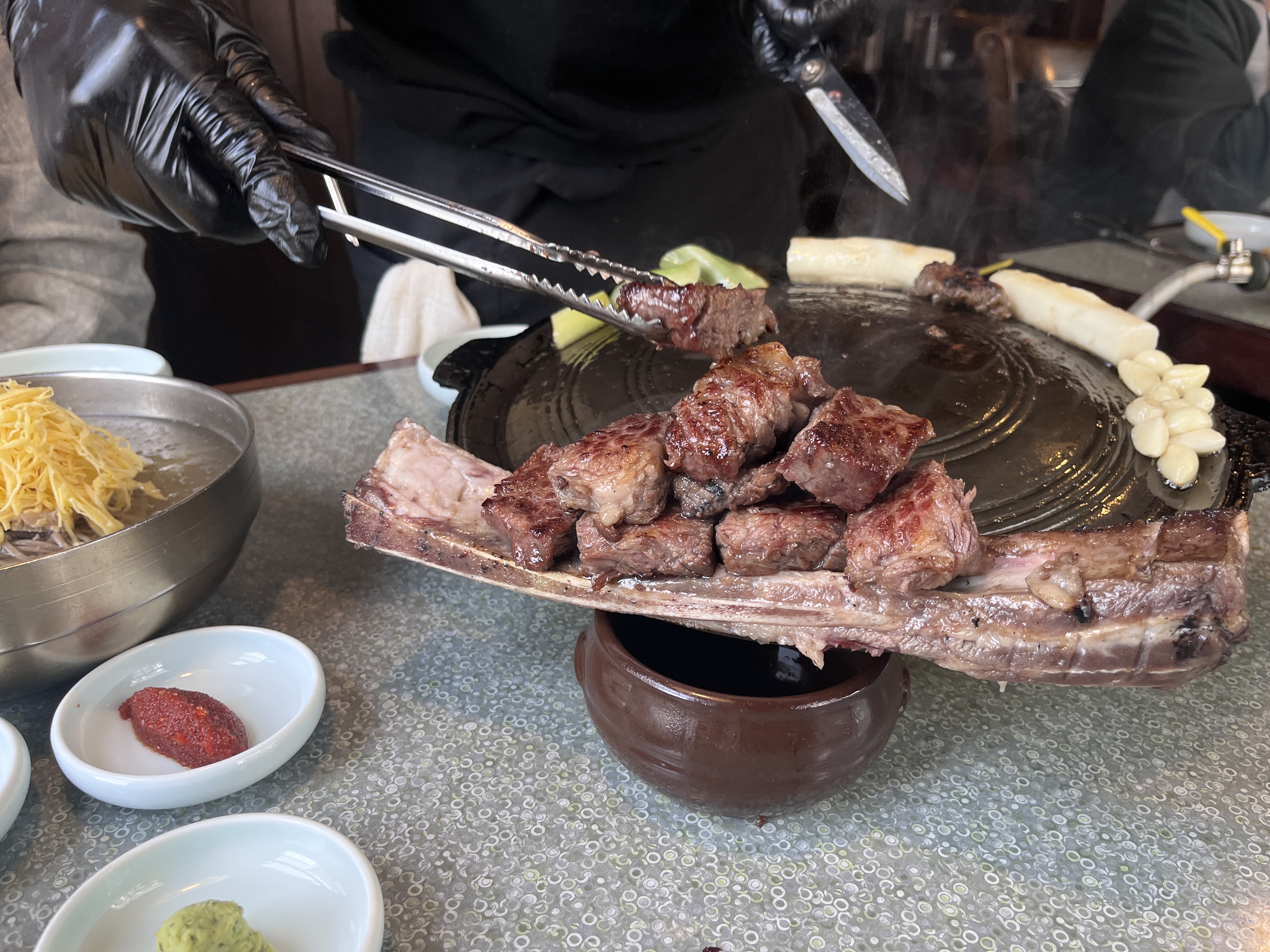 (4)梦碳:好吃的烤韩牛,排队有点久(门口扫码排队),本地人非常多,可以在隔壁咖啡店点一个华夫吃吃等位。
