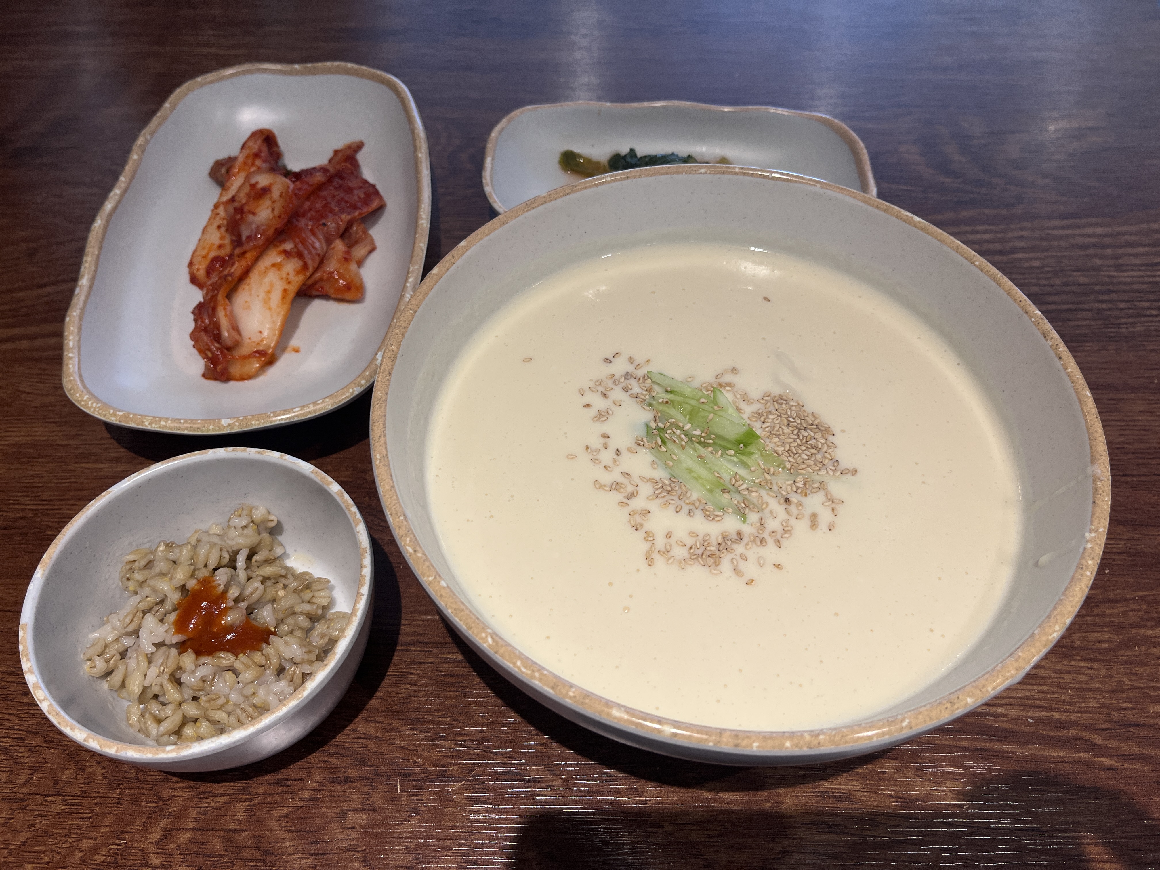 (6)豆浆冷面:需要配着萝卜缨泡菜一起吃,面条冰爽哏啾(小王口述词汇,推测应该是劲道的意思),很适合夏天。