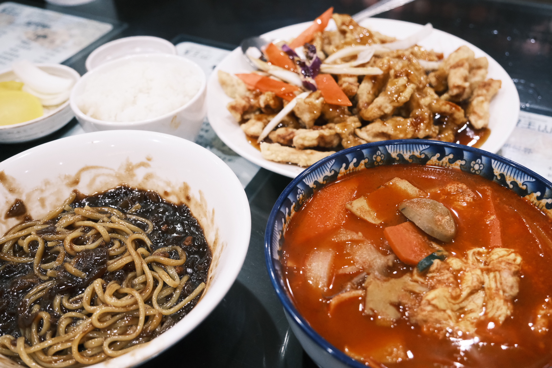 (1)中餐炸酱面、糖醋肉,每家店味道差不多,每次盲选都很好吃。
