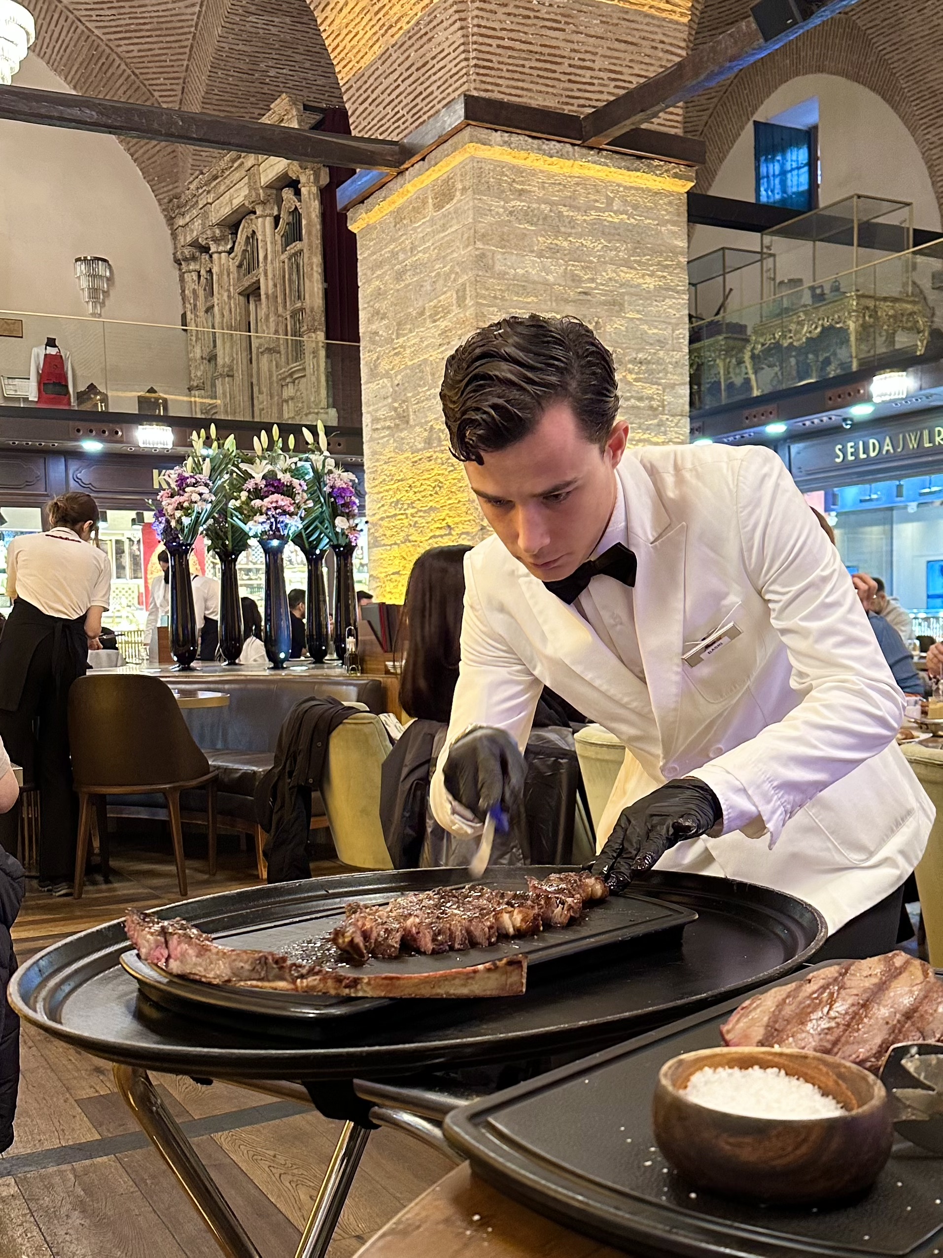 3、去吃撒盐哥餐厅(Special生肉上桌切片滚烫的煎盘里面倒满黄油现场烤制、纽约客牛排、Onion Flower、传统甜品bak lava)