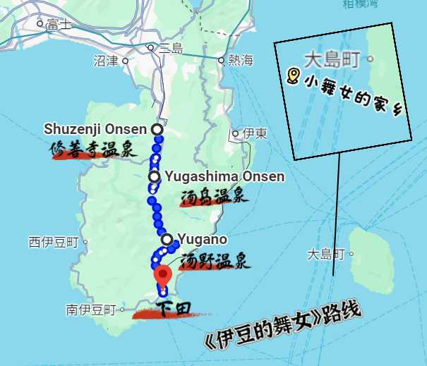 14:42-19:05 川岛与薰子走过的路线,伊豆半岛四大区域概况