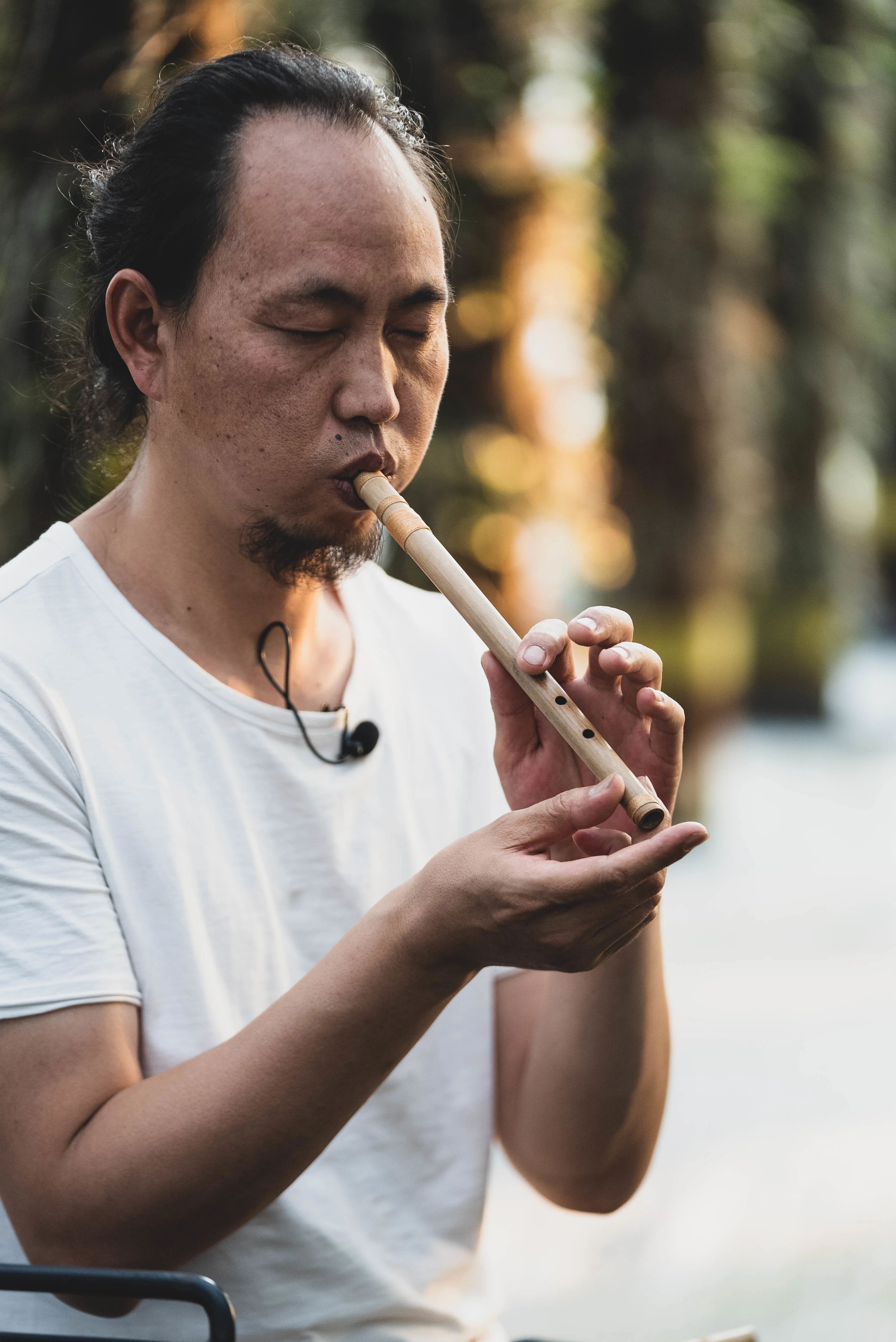 三孔可以做一些自然的泛音,在轻轻地抚摸它的时候,也会产生近似与鸟鸣的音色。这个乐器它总是会带给你山野的气息,比较有鲜活,就像你身处在山林之中。