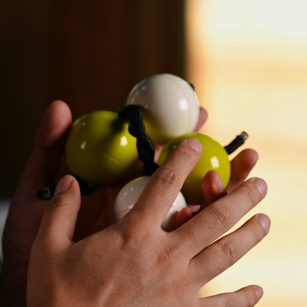 Asalato,一种源自西非的打击乐器,一般中文称为“节奏沙球”。它外形极简,两颗球、一条绳子,却可以变幻出无穷的节奏组合。 最初源自非洲植物鼻烟盒树的果实——达渣果。