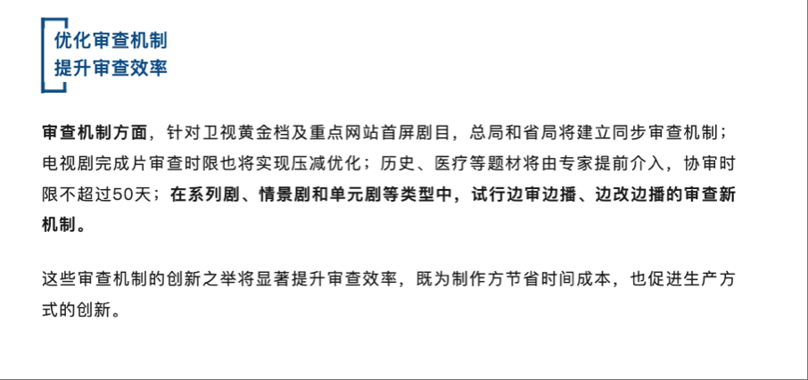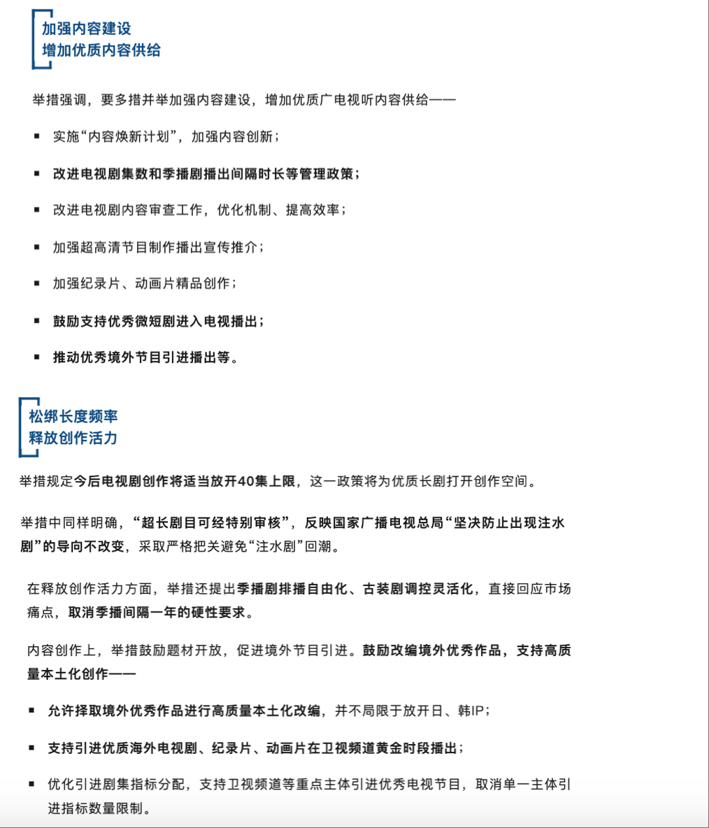 这二级市场释放的大好形式,主要是因为国家广播电视总局印发了名为《进一步丰富电视大屏内容、促进广电视听内容供给的若干举措》(简称为广电新21条)的通知。