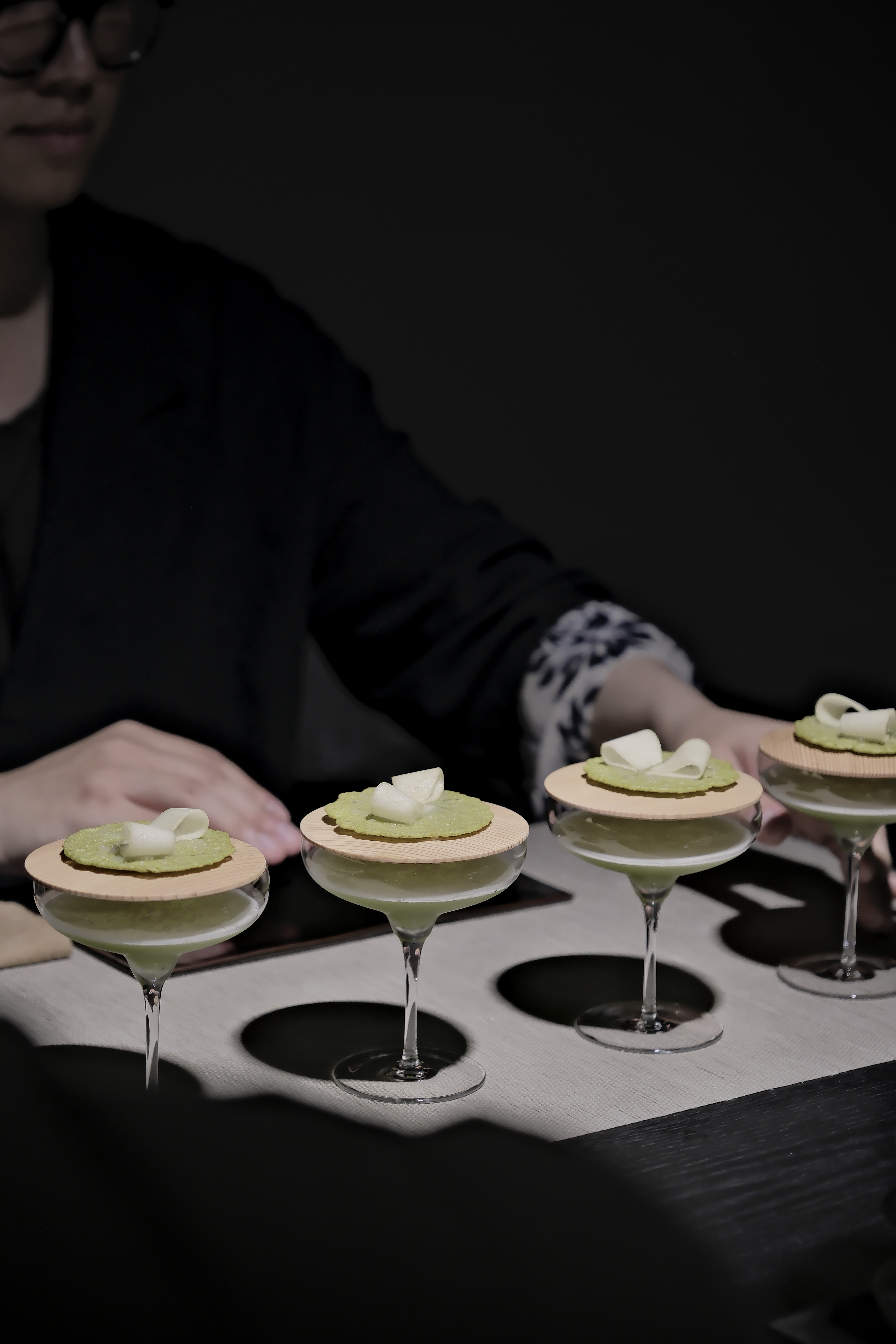 穿行傳統與現代間,以茶酒為媒介的風味釋譯者。得益於多元的生活與研習背景,長期探尋不同地域文化間食材靈感的無限可能。攝影學出身所帶來的異視角,化為茶酒演繹時的"舞台"調度力,風味的鏈接、重組與呈現,如同一段影片最終表達給觀眾的合一感受:時令、場域、燈光、音樂、器物、飲品、動作節奏······五感集萃缺一不可。