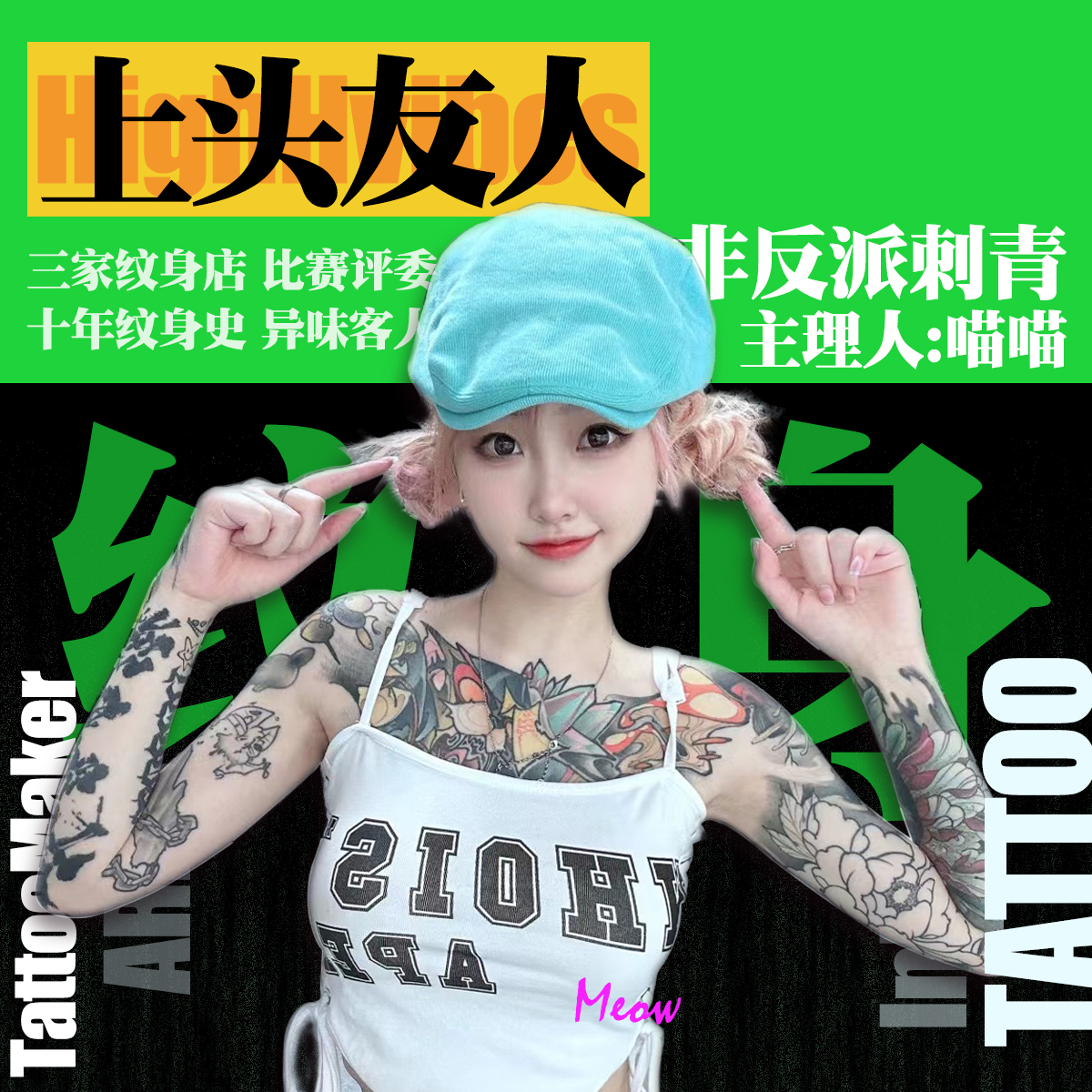 本期上头友人 我们就邀请来了 咸的好友——喵喵 和大家坐下来一起【浅聊一下】 关于纹身的那些二三事