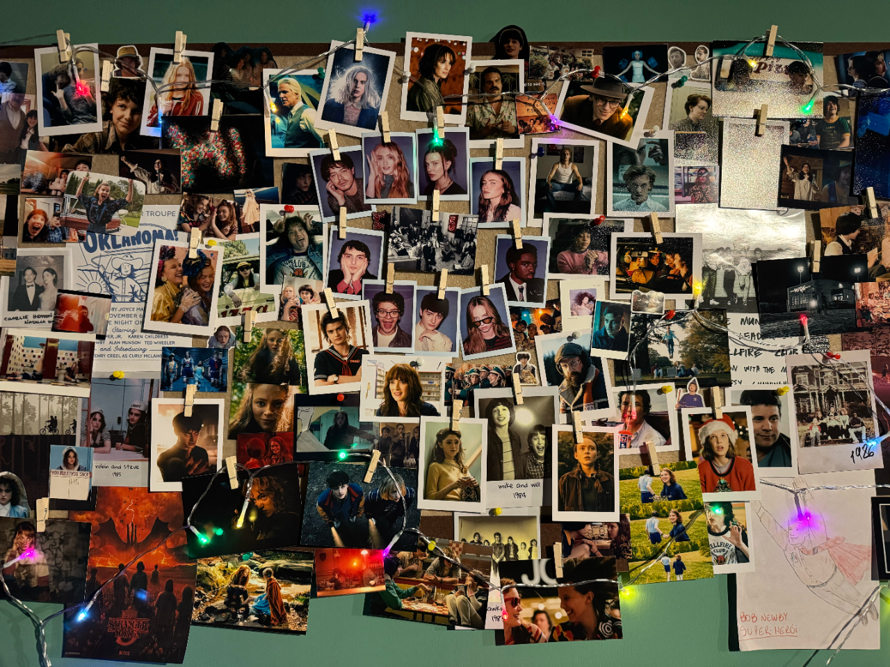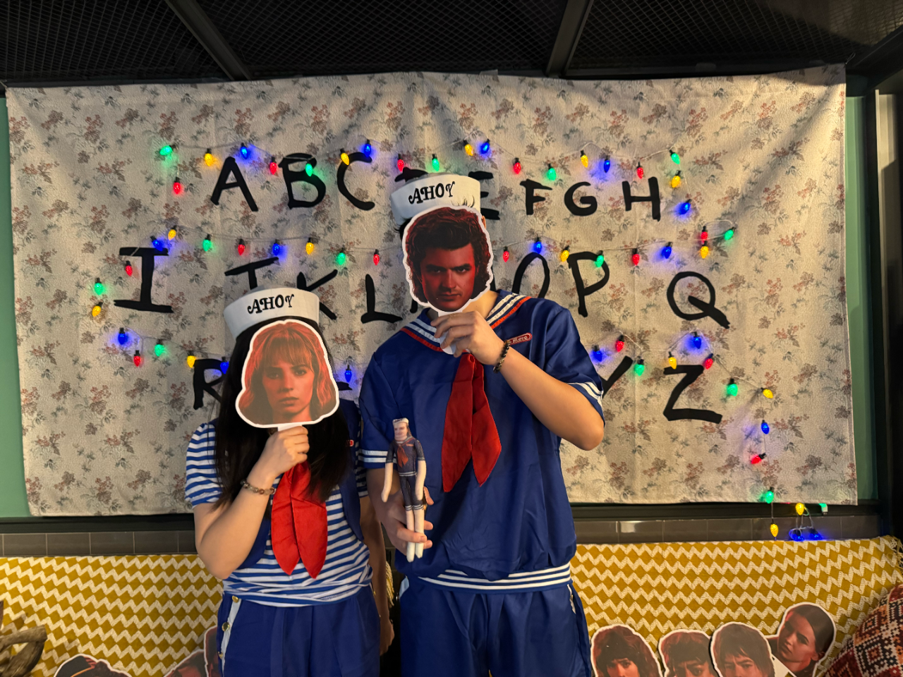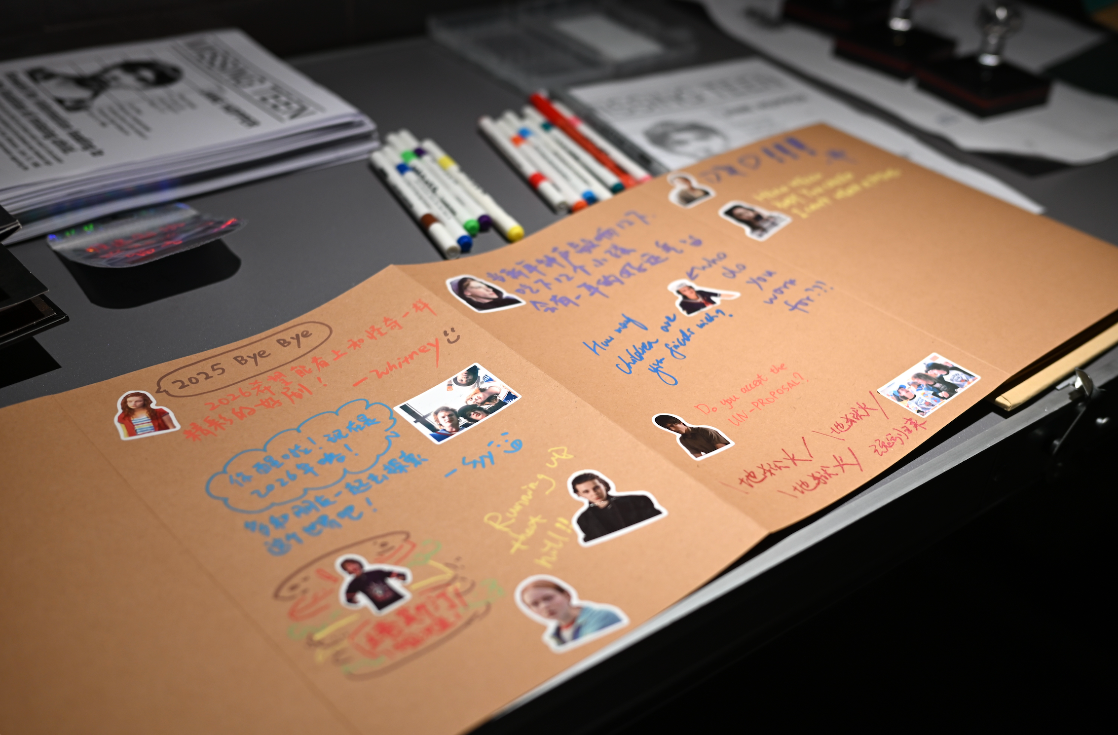 这是《英美剧漫游指南》第一次线下录制长播客(之前都是看剧后简单录观众观感),对我们蛮有纪念意义,所以每位观众都会赠送一枚《英美剧漫游指南》的胸针(或冰箱贴)。同时,我们也会简单布置场地,之前那个”怪奇展“(下图),部分场景也会搬到这里来,活动周边也会在这里售卖,欢迎大家前来打卡、互换无料。