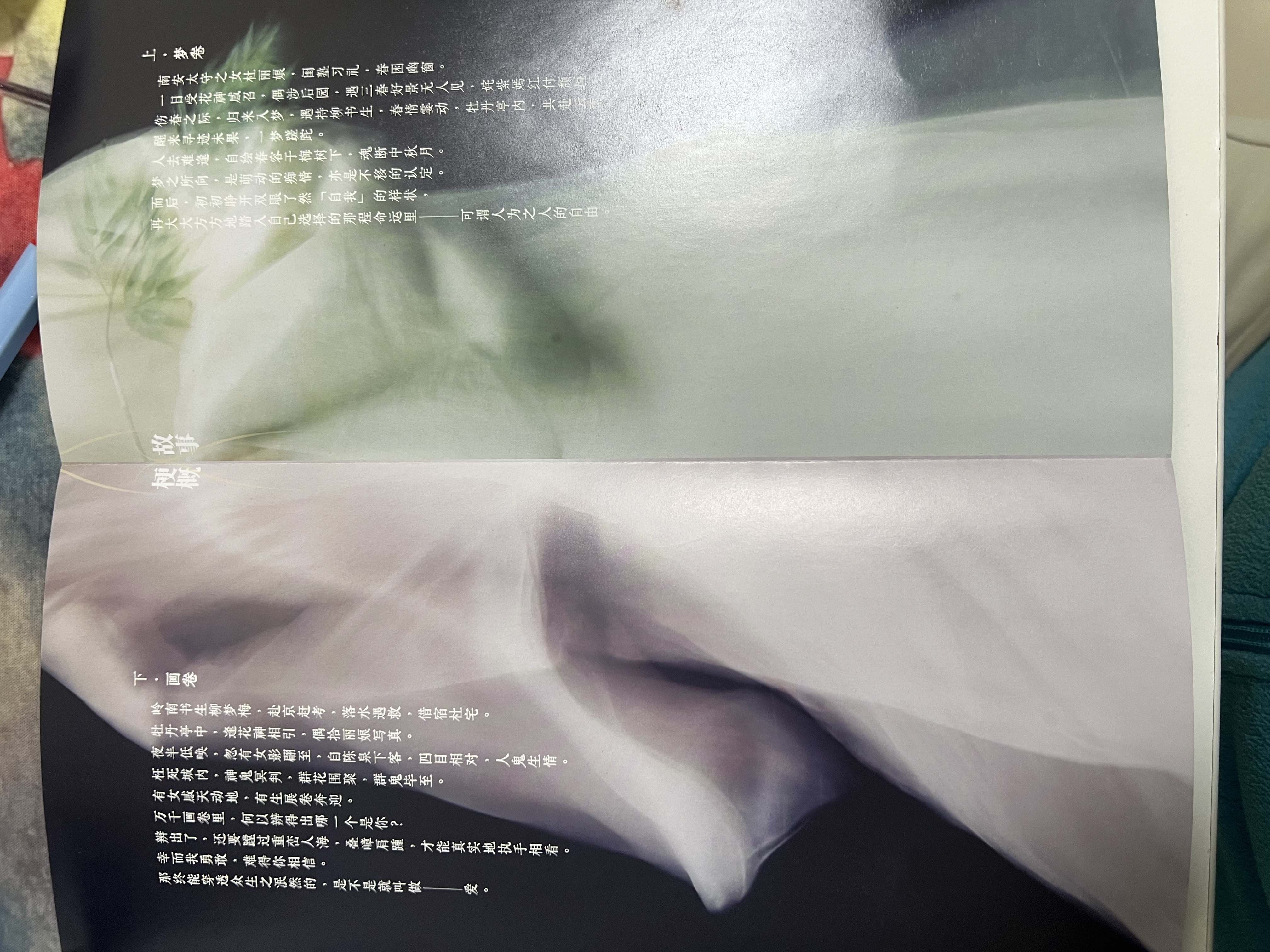 下卷・画卷,是柳梦梅的 “情始于画,终于还魂”。他是赴京赶考的书生,落难借住在杜家的梅花庵,偶然在太湖石下捡到了杜丽娘的画像 —— 这画就是梦卷的 “余韵”。他对着画越看越眼熟,像在梦里见过,于是日夜呼唤,竟真的唤出了杜丽娘的魂魄。手册里写 “牡丹低唤,忽有女影翩至”,就是这一幕。后来他听了丽娘的话,掘墓让她还魂,两人跨越生死,终于相守。
