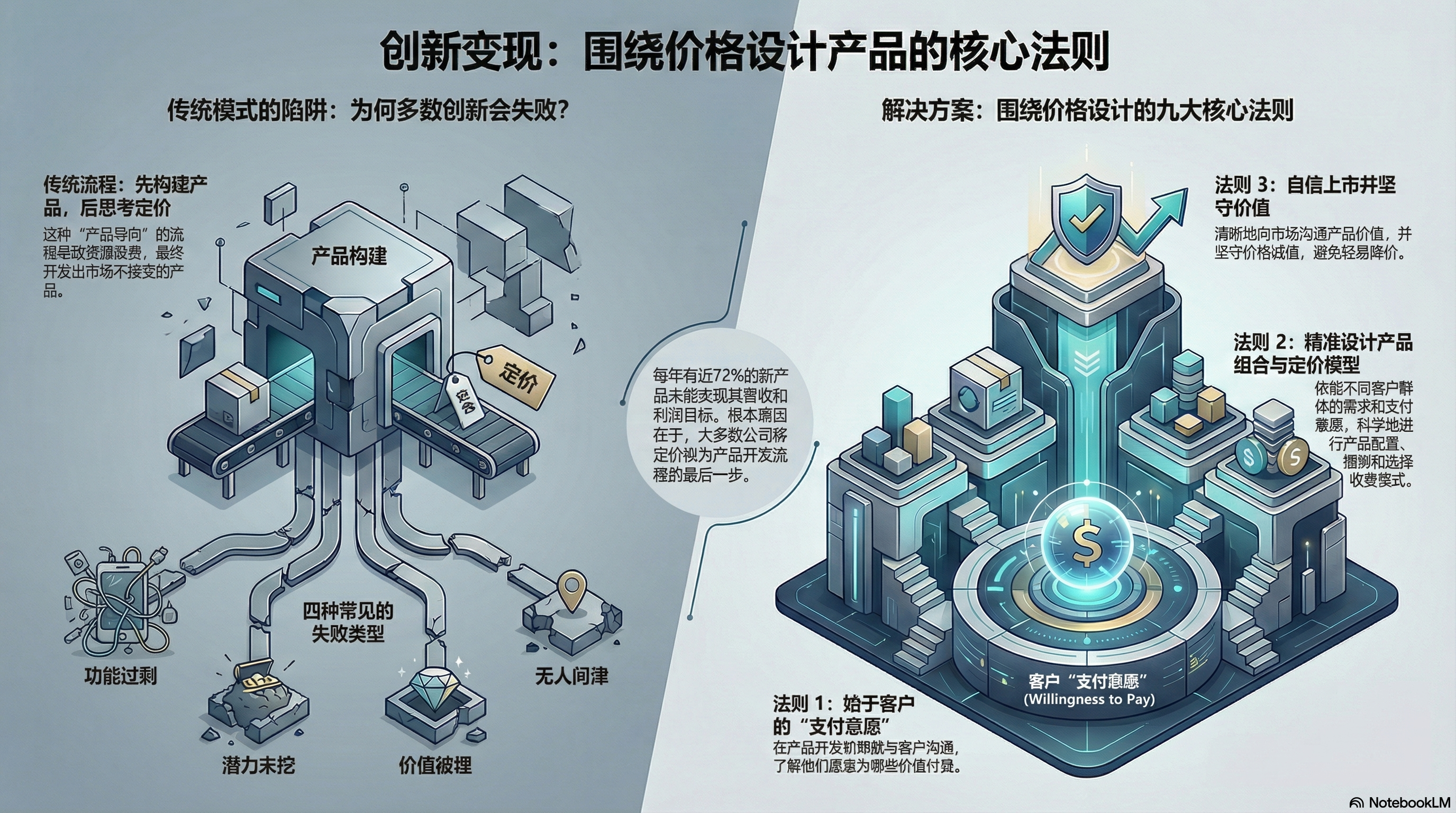 - 传统思维的陷阱: 大多数公司将定价视为创新周期的最后一步(即“先设计,再建造,再推广,最后定价”)。这种滞后的定价决策导致了收入估算仅仅是猜测,而非基于事实。