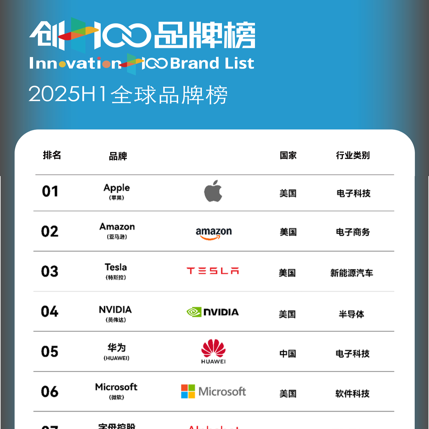 前瞻钱瞻: 创+创新智库及平台于2025年7月15日发布了 2025 上半年 《创+创新100强全球品牌》