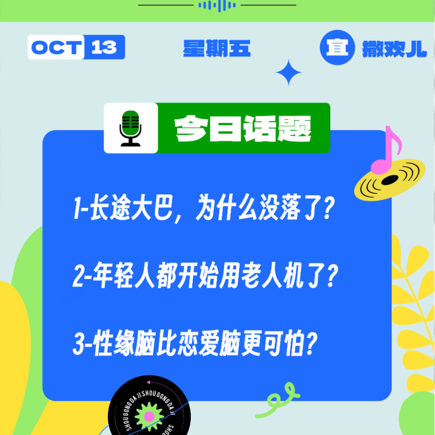 今天是10月13日,星期五,《收工大吉》今日陪你聊: