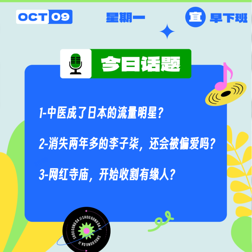今天是10月9日,星期一,《收工大吉》今日陪你聊: