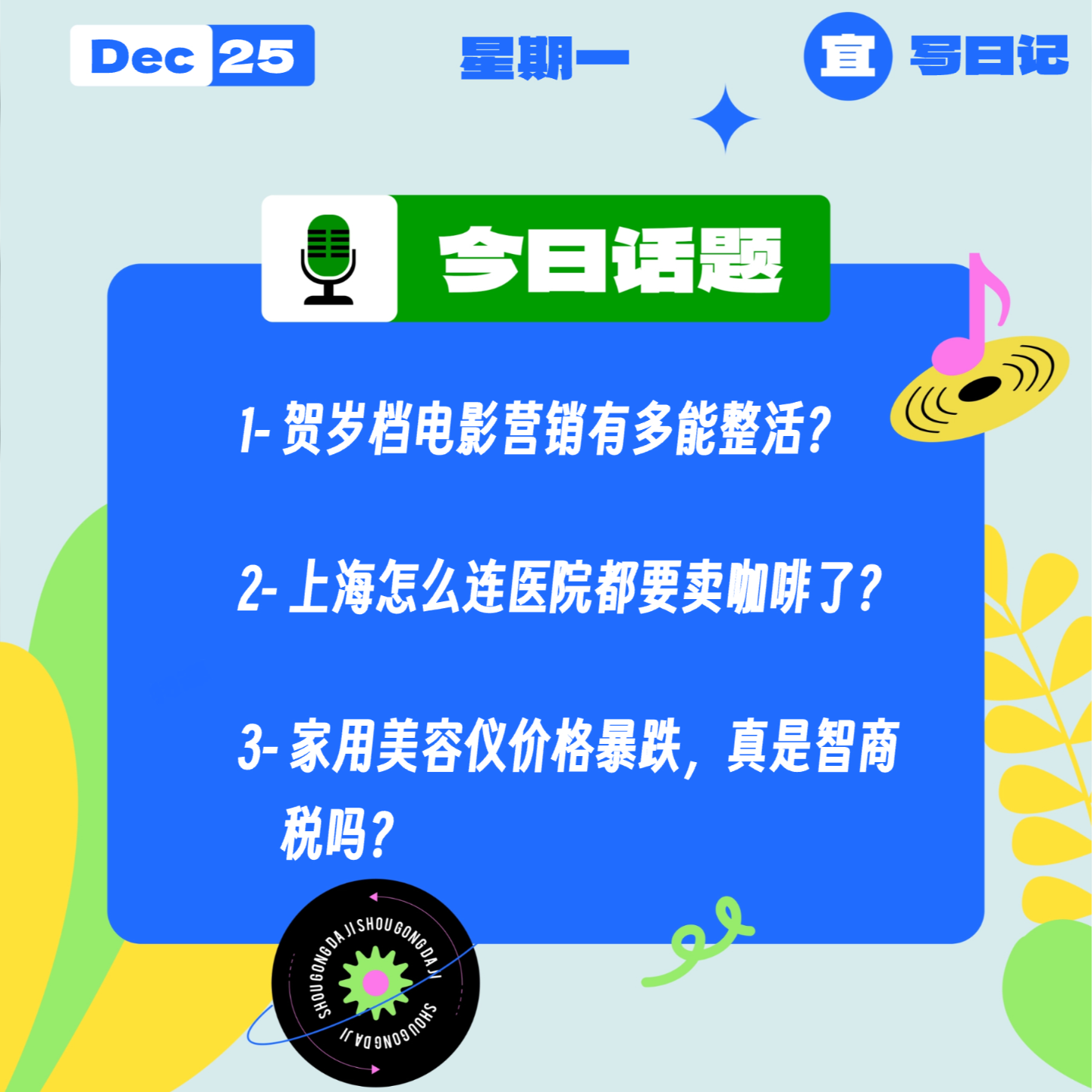 今天是12月25日,星期一,《收工大吉》今日陪你聊: