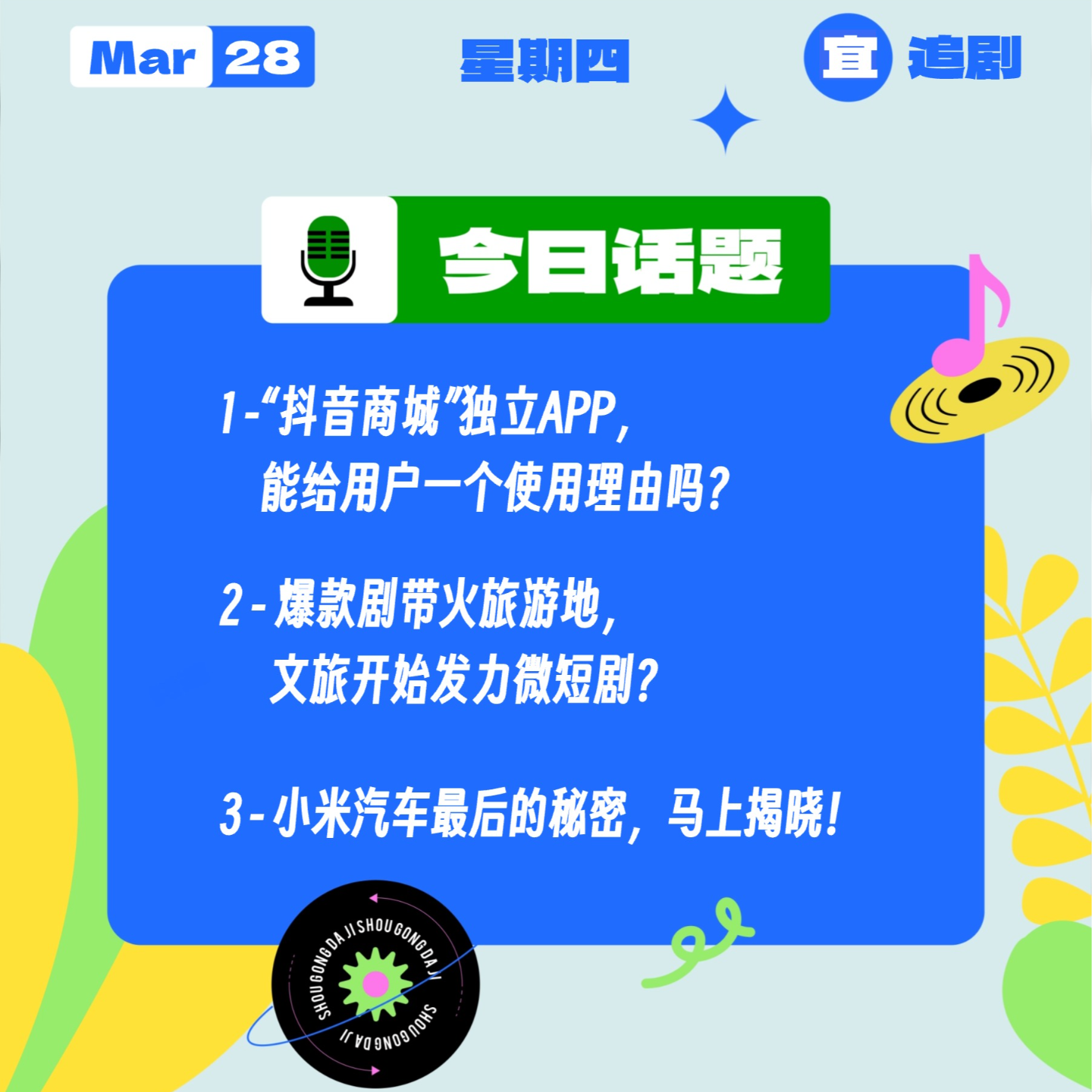 今天是3月28日,星期四,《收工大吉》今日陪你聊: