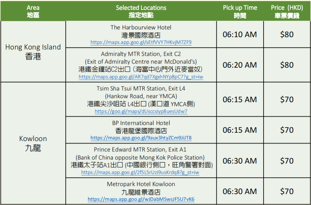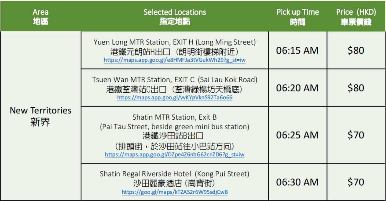 往年的接驳车信息