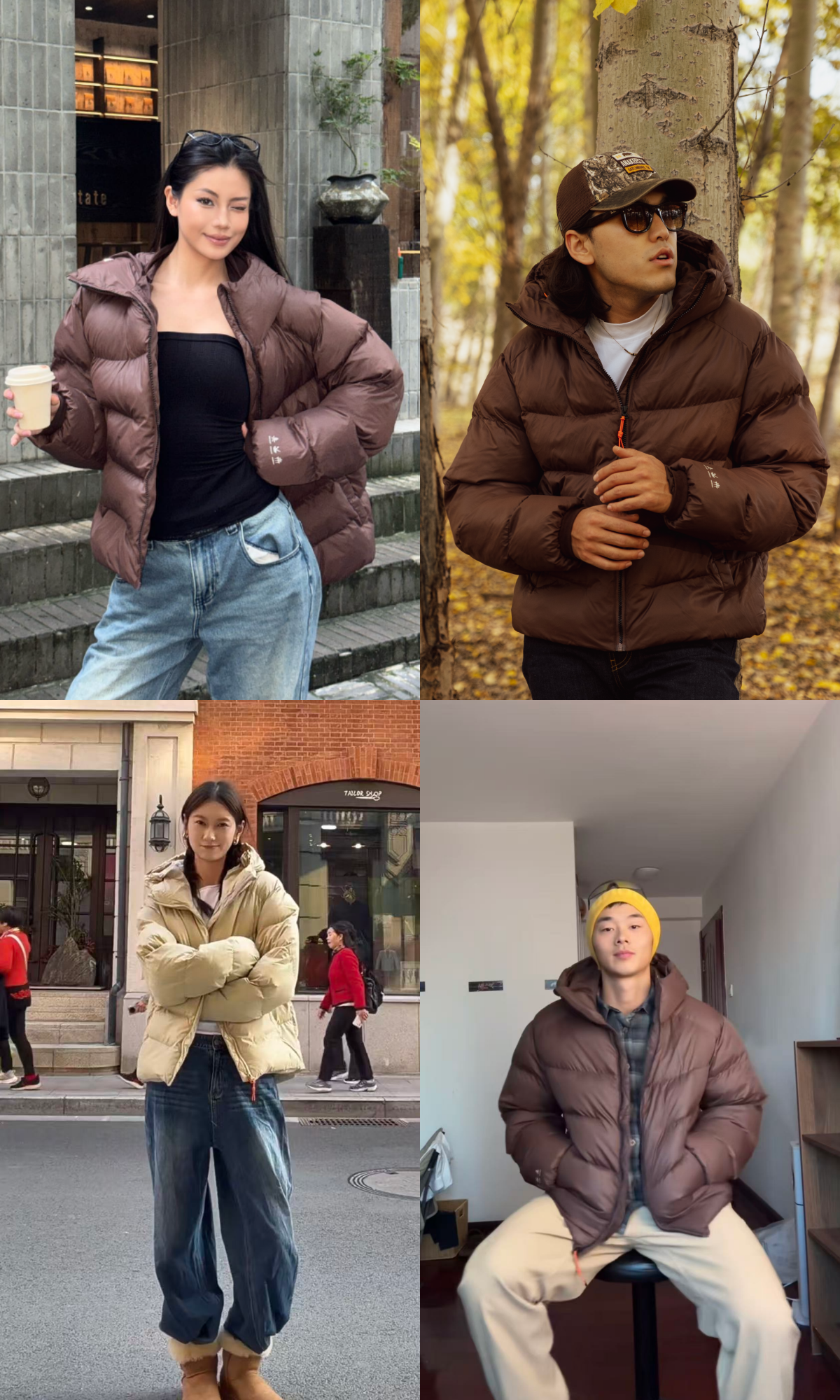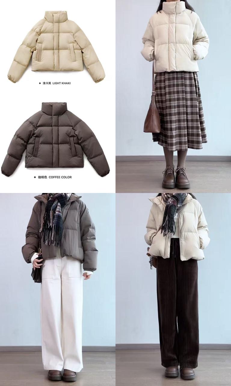 这款是他们家今年的超级大爆款羽绒服,小红书很多姐妹都有推荐,版型是那种略微短款设计,保证保暖效果的同时显腿长,双十一没买到的姐妹们真的都可以冲这一款卡其黄面包羽绒服(点击跳转)(划线部分插入短链接 m.tb.cn )。两个颜色都比较有秋冬氛围,主播比较喜欢卡其色,因为这款也防泼水也能更耐脏实穿,沾上脏东西直接擦掉就可以了。这种面包羽绒服的搭配要点是内搭,内搭的袖口一定要拖出羽绒服的袖口!就会显瘦很多很多!