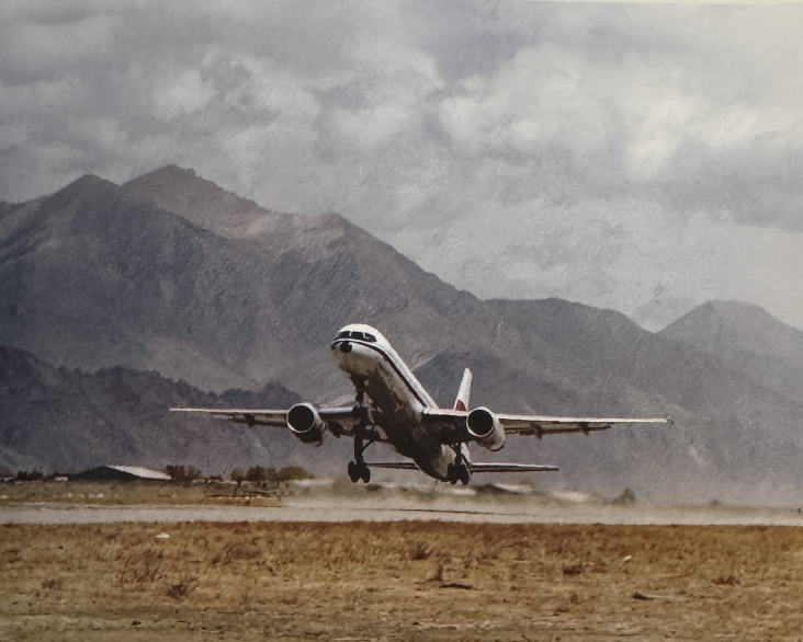 演示飞机在拉萨机场起飞