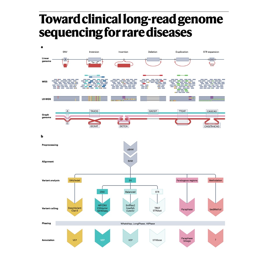This paper explores the evolving landscape of genetic diagnostics, highlighting the current limitations of short-read genome sequencing in identifying the genetic causes of many rare diseases. It introduces long-read whole-genome sequencing (LR-WGS) as a promising advancement, capable of detecting previously undetectable variants, performing haplotype phasing, and analyzing methylation patterns. The text details the benefits of LR-WGS, such as improved structural variant detection and more comprehensive analysis of de novo mutations, while also addressing the challenges in its clinical implementation, including cost, throughput, and the need for standardized protocols and data interpretation tools. Ultimately, the source advocates for the integration of LR-WGS into routine clinical diagnostics to enhance diagnostic yields for rare diseases.