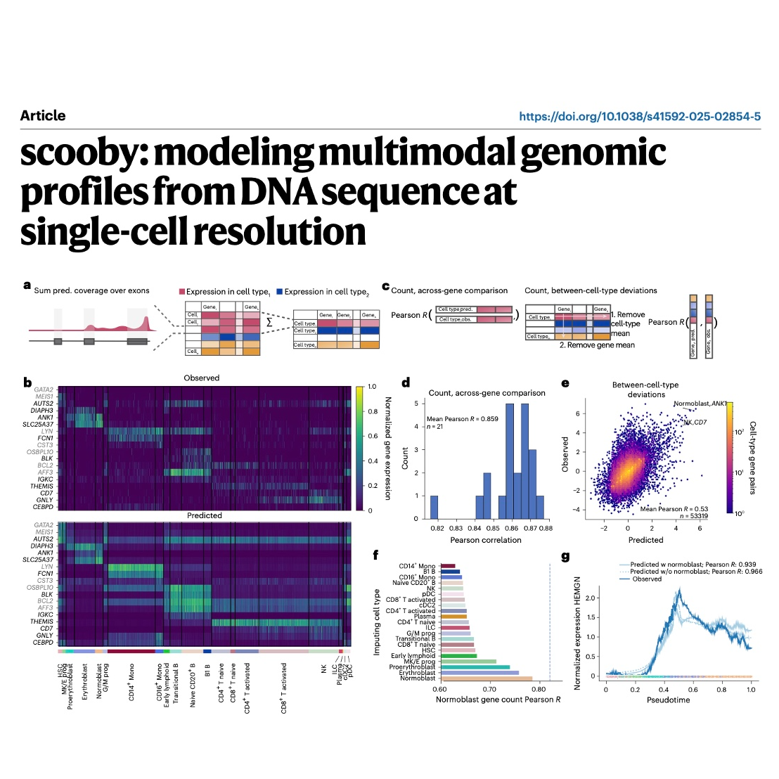 The paper introduces scooby, a novel computational framework that utilizes deep learning to model multimodal genomic profiles-specifically single-cell RNA-sequencing (scRNA-seq) coverage and chromatin accessibility (scATAC-seq insertions)-directly from DNA sequence at single-cell resolution. scooby builds upon the existing bulk multiomics model Borzoi by integrating a cell-specific decoder and employing parameter-efficient fine-tuning (LoRA) to adapt it for single-cell data, effectively capturing cellular heterogeneity. The authors demonstrate that scooby accurately predicts cell-state-specific gene expression, substantially outperforming previous models, and successfully identifies lineage-specific transcription factor (TF) activity through in silico motif mutation experiments. Furthermore, the framework proves valuable in dissecting cell-type-specific variant effects (eQTLs), which are often masked in bulk-level genomic studies. Overall, scooby is presented as a scalable and accurate tool for uncovering the genetic mechanisms underlying gene regulation in individual cells.