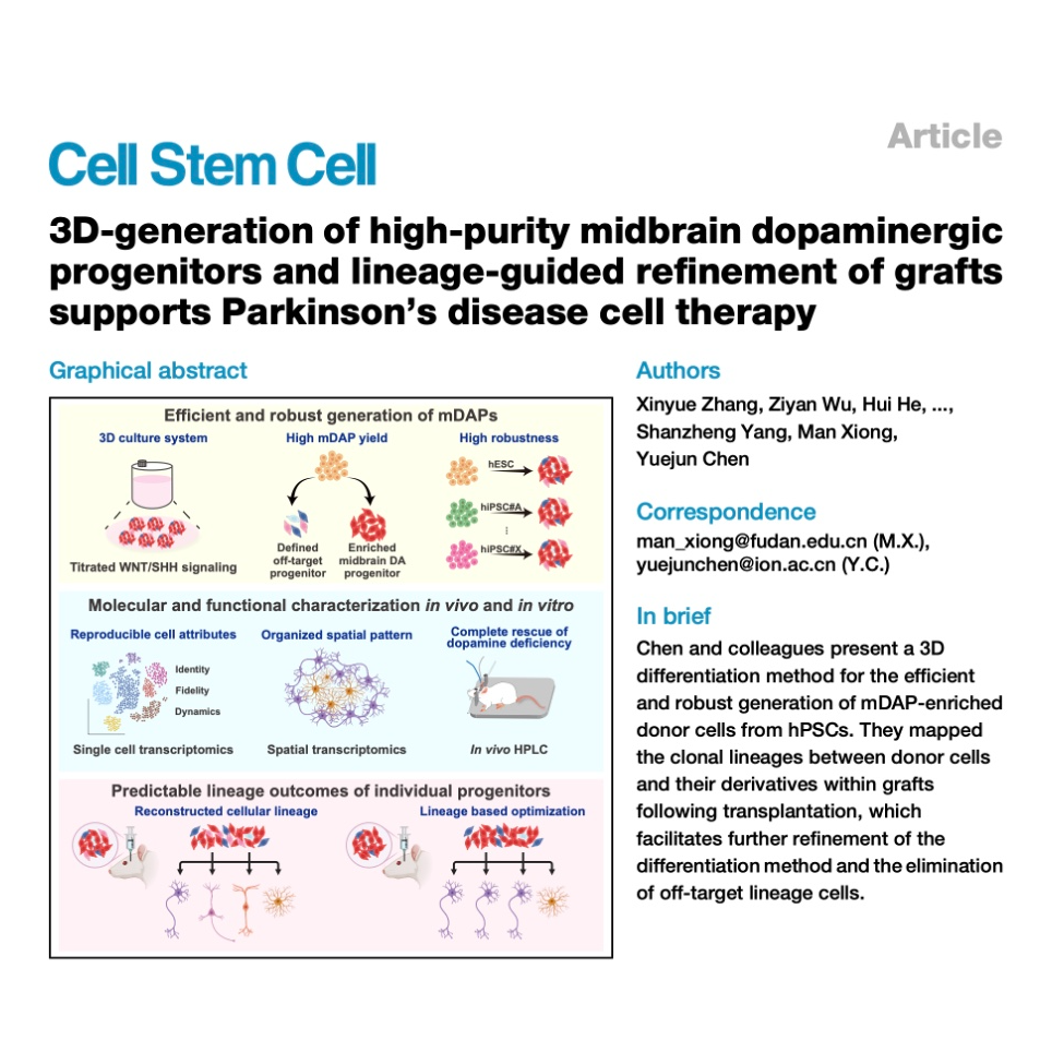 - Zhang X, Wu Z, He H, et al. 3D-generation of high-purity midbrain dopaminergic progenitors and lineage-guided refinement of grafts supports Parkinson’s disease cell therapy[J]. Cell Stem Cell, 2025.