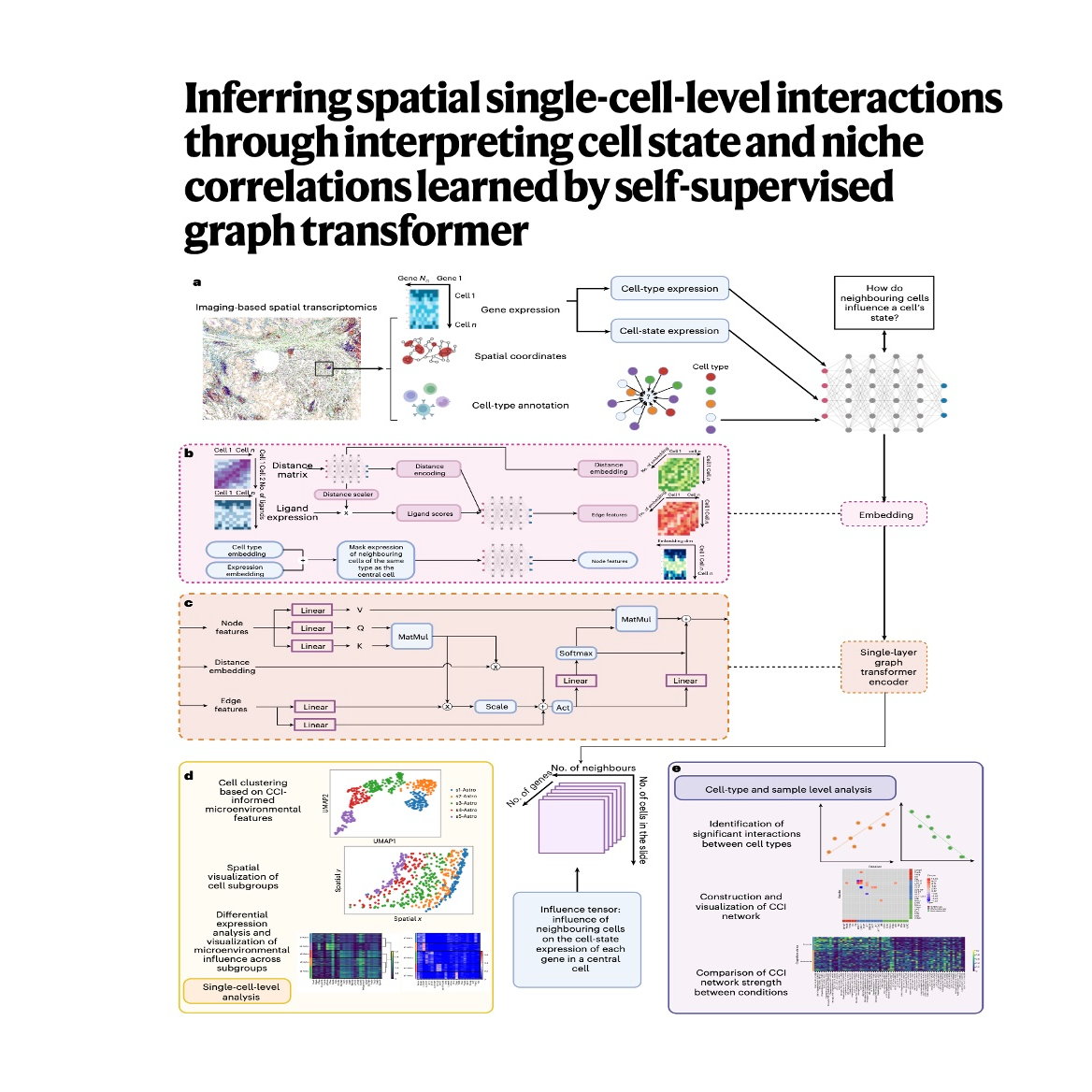 - Xiao X, Zhang L, Zhao H, et al. Inferring spatial single-cell-level interactions through interpreting cell state and niche correlations learned by self-supervised graph transformer[J]. Nature Machine Intelligence, 2025: 1-17.