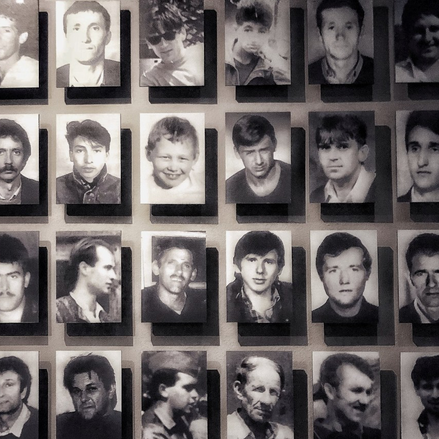 在一个战争图片展,我看到了一整面墙的黑白遗像。