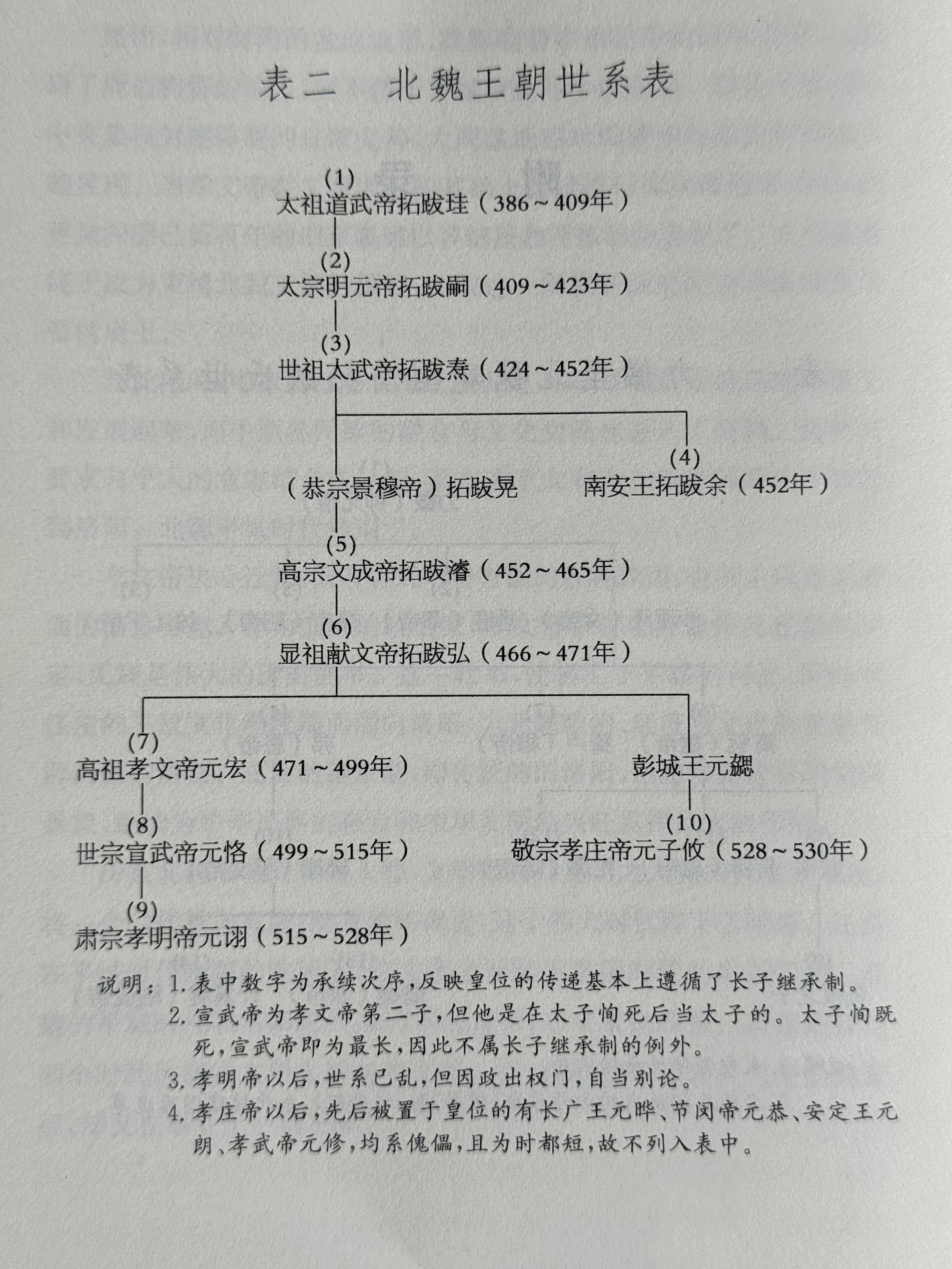 图二 北魏王朝世系表